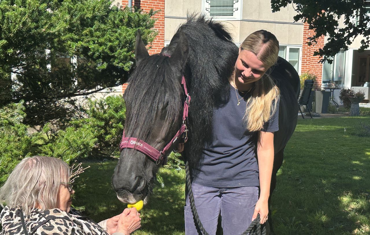 Tidligere på ugen fik beboerne på Vorup Plejehjem en lidt anderledes oplevelse. Her fik de nemlig besøg af hesten Nando. Og det vakte stor glæde.