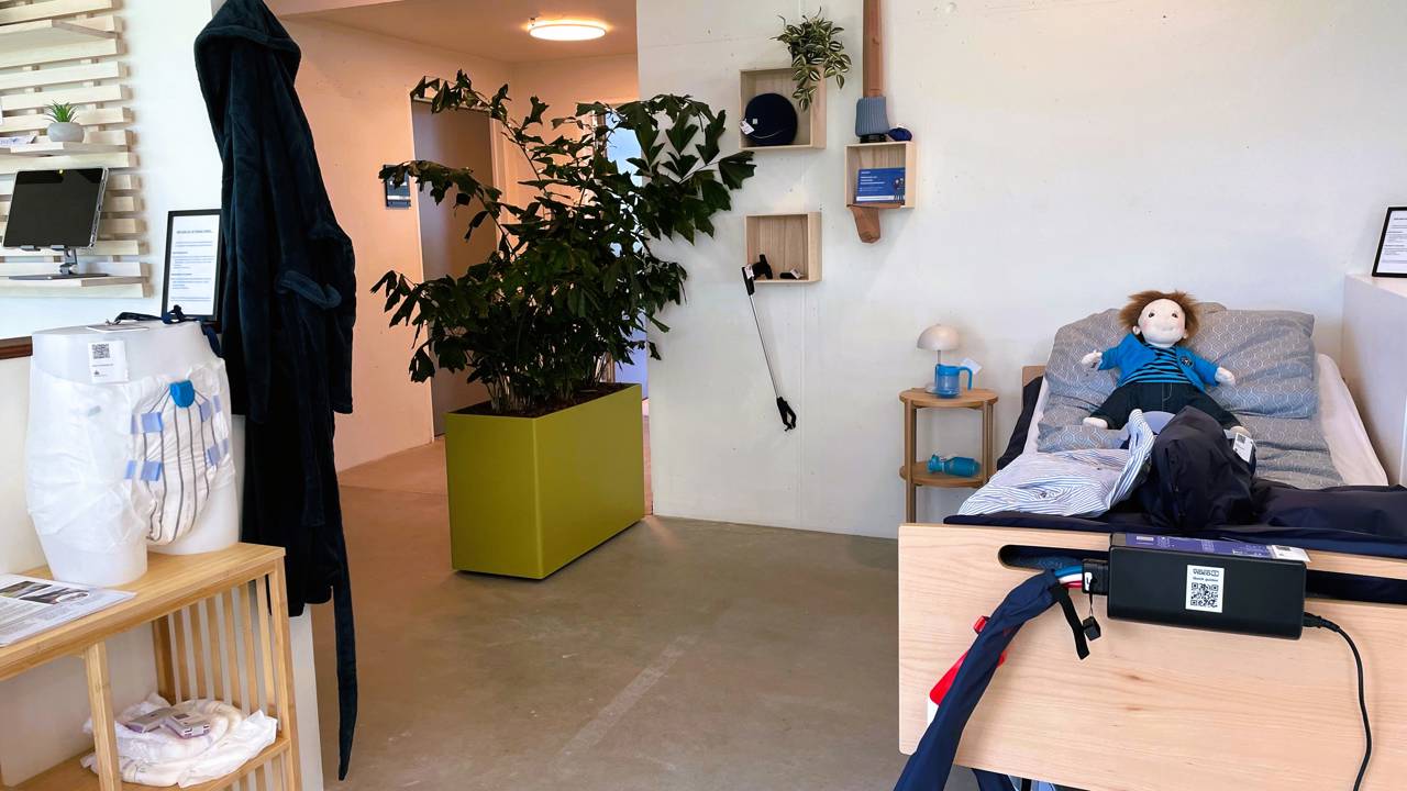 I lejlighedens forskellige rum viser vi, hvordan hjælpemidler og moderne teknologi kan hjælpe dig til at leve et trygt og selvstændigt liv. Du vil opleve en bred vifte af produkter designet til at gøre det nemmere for dig at kunne klare hverdagens daglige gøremål selv og fremme din livskvalitet, lige fra vendesystemer og søvnfremmende vejrtrækningsteknologier i soveværelset til synshjælpemidler og erindringssystemer i stuen.