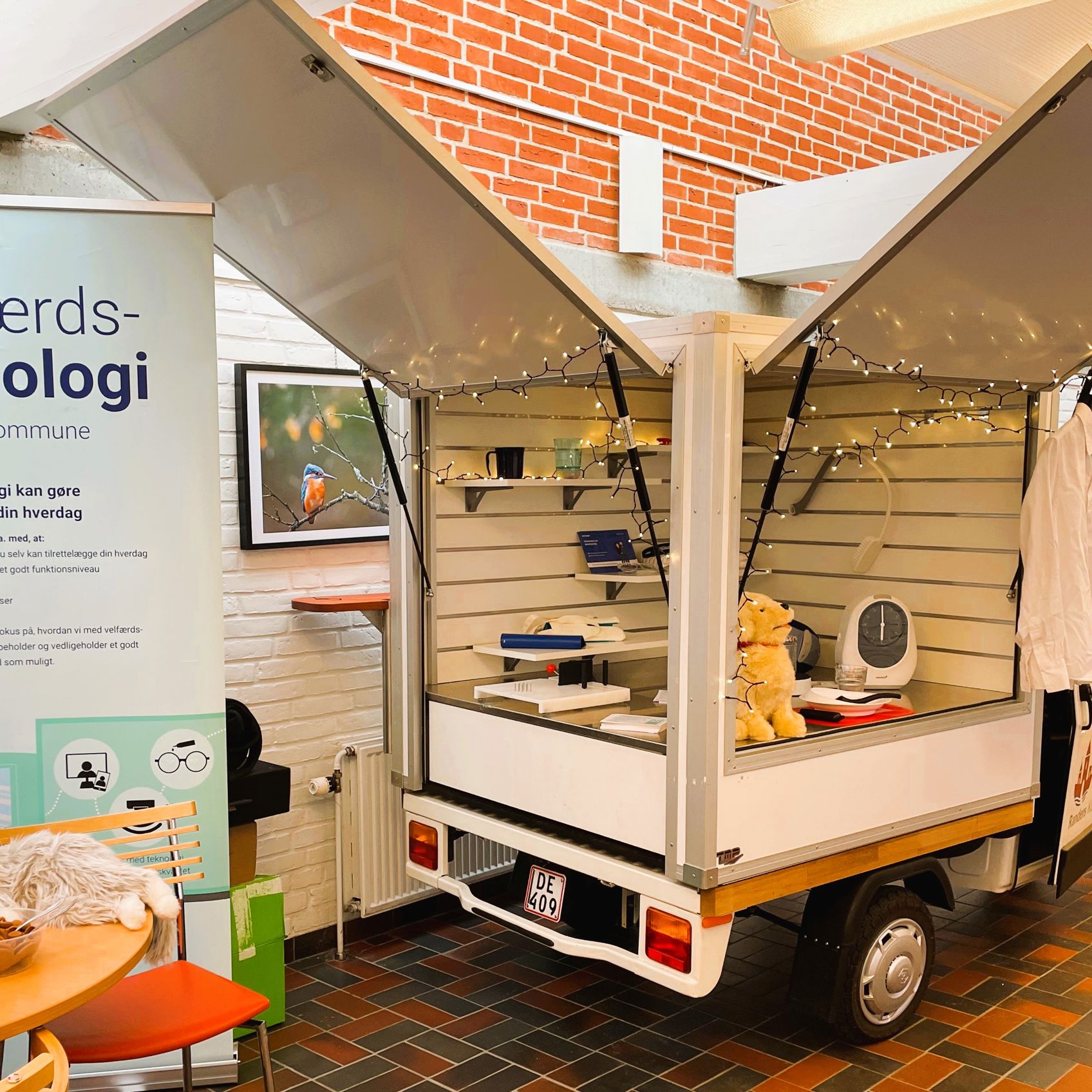 For at kunne møde borgerne i lokalområderne, har Randers Kommune en mobil udstilling, hvor vi viser mindre velfærdsteknologier og hjælpemidler. Vores Tuk-tuk kan du blandt andet møde ved biblioteket, Storcentret, Sundhedshuset, bosteder og plejehjem. Når vi ikke kan have vores tuk-tuk med, har vi en kuffertudstilling, som vi tager med på tur.