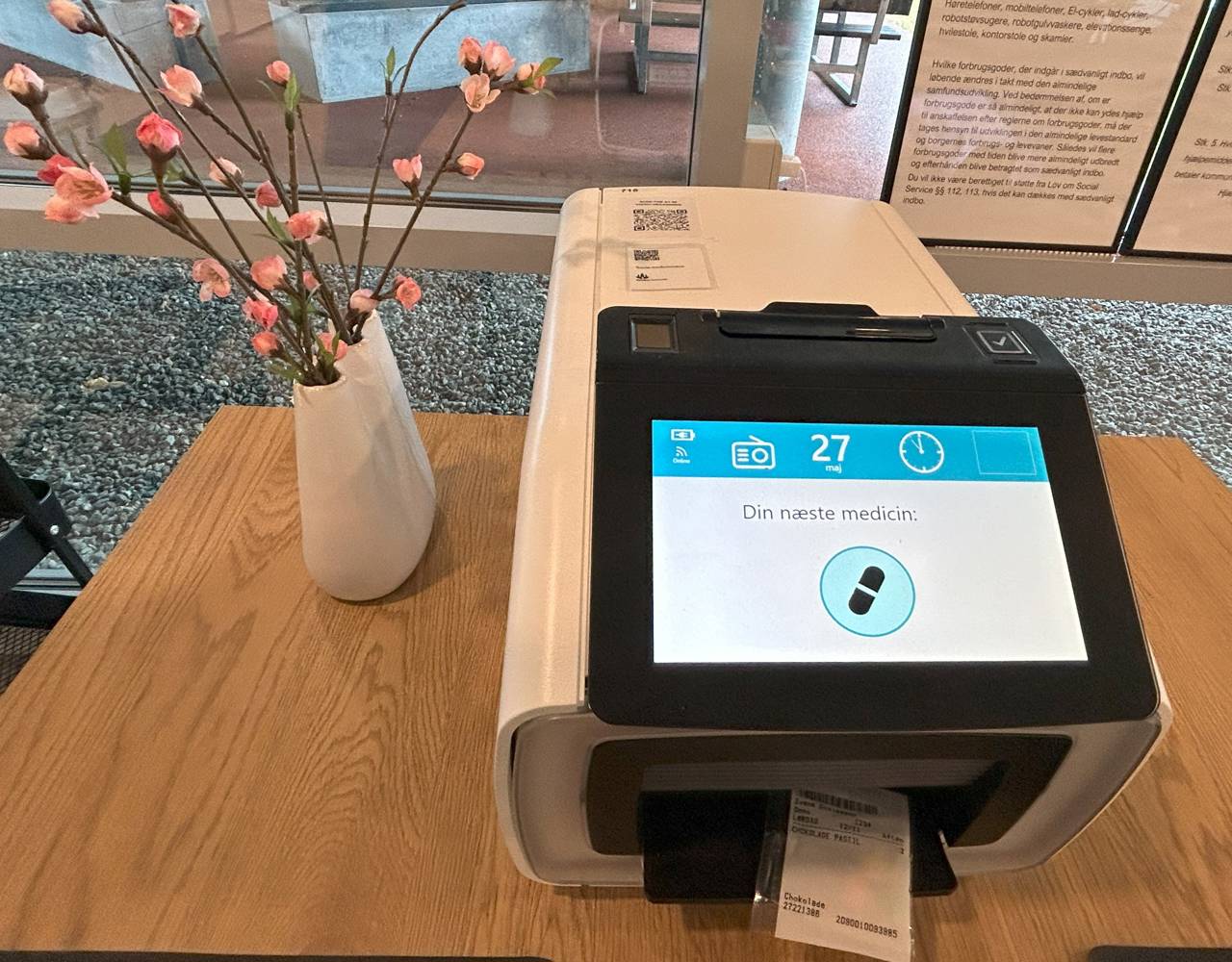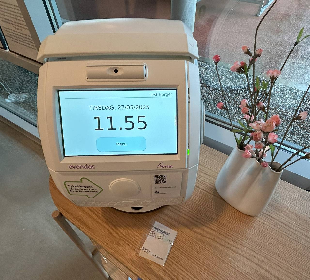 Evondos er en automatisk medicindispenser til borgere som får dosisdispenseret medicin. Borgeren får med et enkelt tryk udleveret medicinen på det ordinerede tidspunkt, og hvis borgeren ikke trykker på knappen indenfor det aftalte tidpunkt, modtager det sundhedsfaglige personale en alarm og følger op på den.