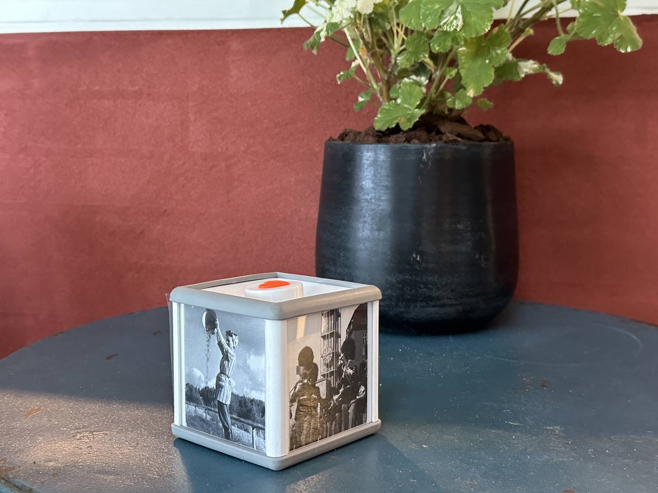 Skab reminiscens og meningsfulde samtaler med billeder, videoer og musik, der er nem at forholde sig til for mennesker med demens. MemoryCube styrker den personcentrerede omsorg gennem dialog om livshistorien. Sæt stationen til tv'et og brug terningen til at vælge hvad der skal afspilles. Billeder og videoer uploades via en app, så det er nemt for hele familien at dele billeder eller videoer .