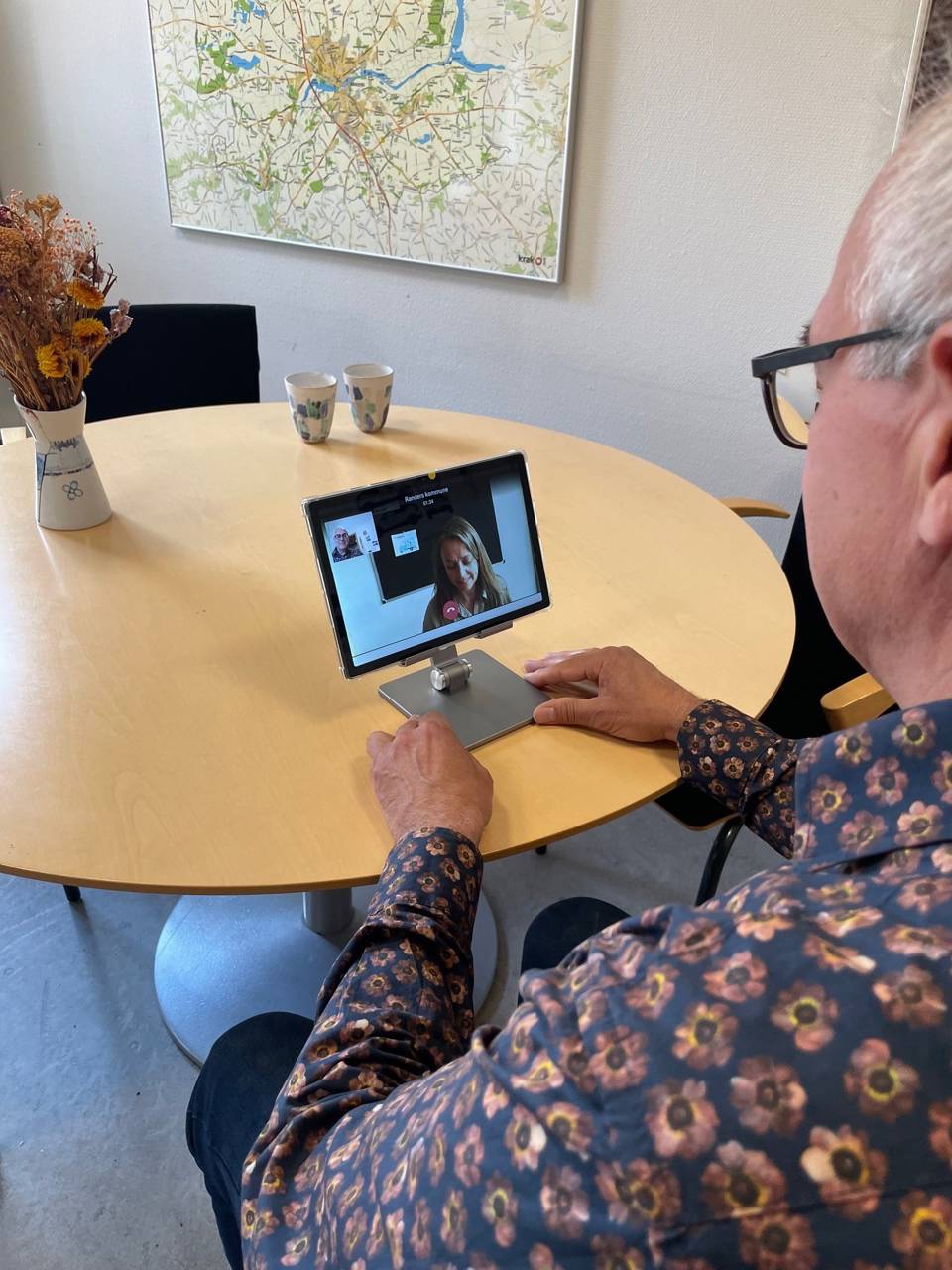 Samtalen foregår via en sikker forbindelse og Randers Kommune stiller en skærm til rådighed til formålet. Skærmen er nem at betjene og vi hjælper dig godt i gang, så du er tryg ved at bruge den.