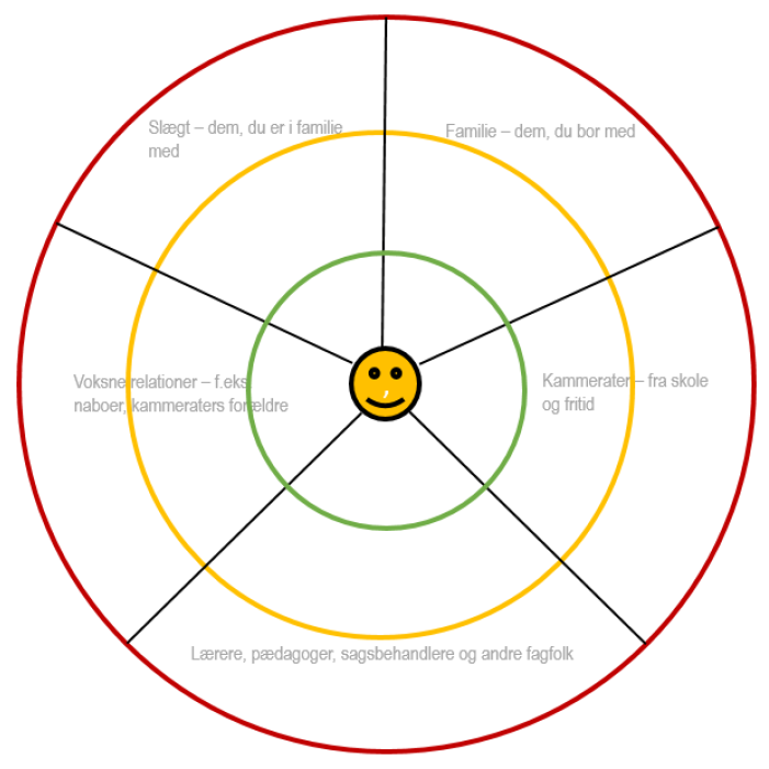 Et netværkskort giver både dig og os et billede af dit netværk. Netværket kan bestå af professionelle eller private personer, som er i dit og dit barns omgangskreds. Det kan være familiemedlemmer, en ven eller veninde, skolelærere, pædagoger, spejderleder osv.
