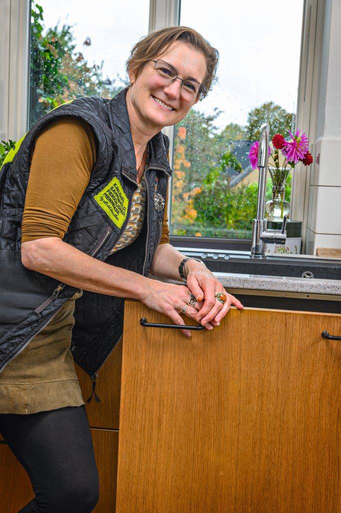 Hun har inviteret os indenfor for at vise, hvordan hun har lavet sit eget køkkenskab om til en praktisk skuffe til affald.