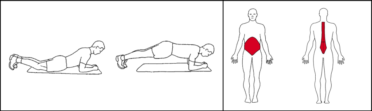 Lig på maven eller knæene med tåspidserne og underarmene mod gulvet. Løft bækkenet op fra gulvet ved at spænde i ryg og mave. Stabiliser kroppen i denne stilling og hold den i max tid og hvil tilsvarende.