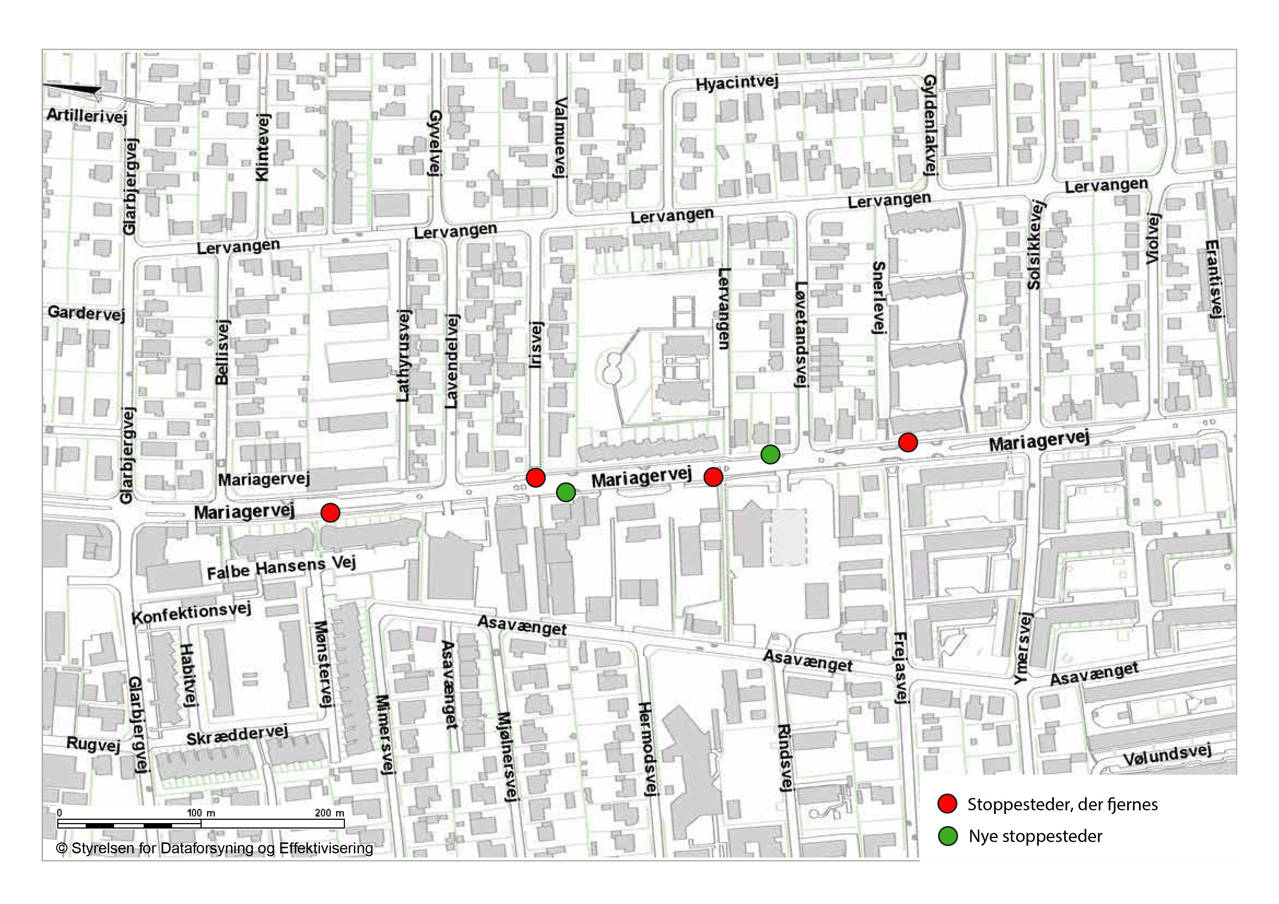 De tidligere stoppesteder vil blive fjernet. De nye stoppesteder bliver gravet ned i jorden når der er fundet en endelig placering. Pt er der et arbejde i gang med at undersøge mulighederne for at kunne imødekomme de borgerhenvendelser, der er kommet som følge af ændringen. Der forventes en afklaring på dette i løbet af første kvartal i 2026.