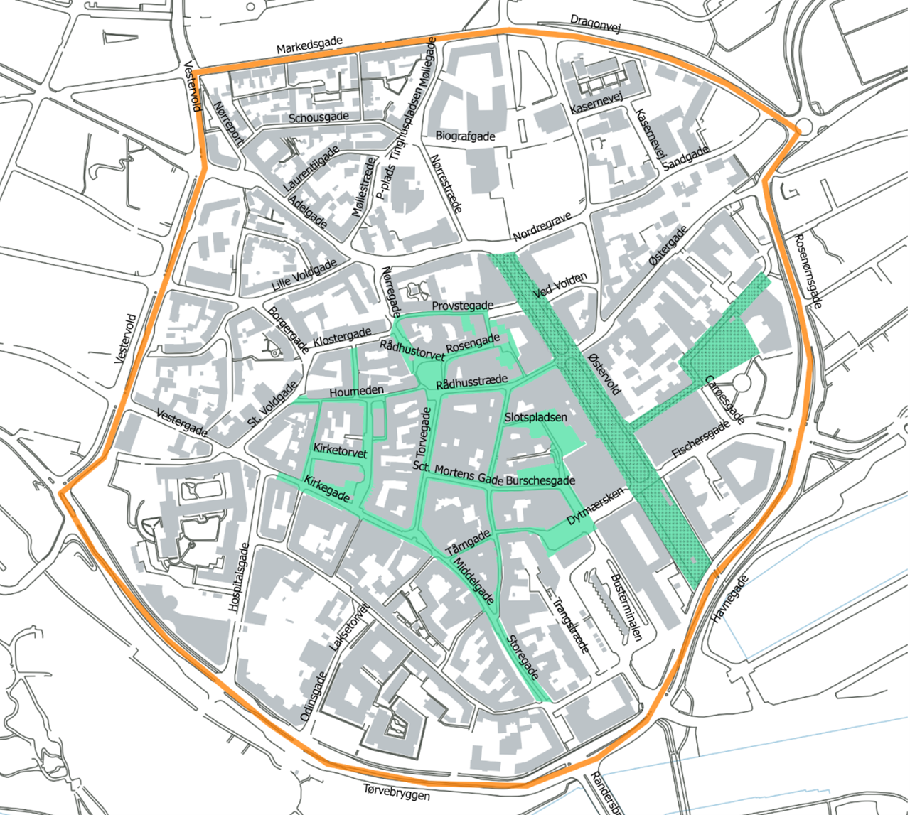 Midtbyregulativet fastsætter vilkår for brug af vejarealerne inden for centerringen i Randers Midtby.