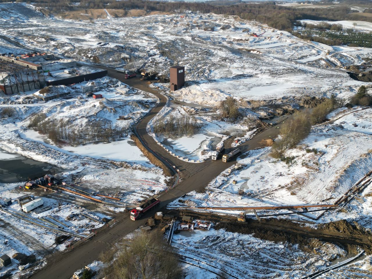Randers Kommune giver her en status på hvordan snestormen påvirker situationen på Nordic Waste skadested, hvor der både kæmpes mod et enormt jordskred og sikre, at Alling Å ikke forurenes.