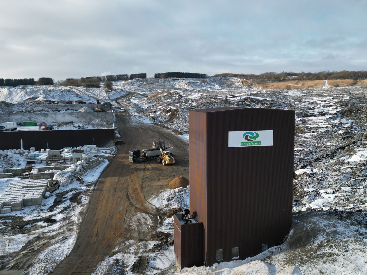 Se billeder: Spunsbyggeri trækkes op ved Nordic Waste, E45