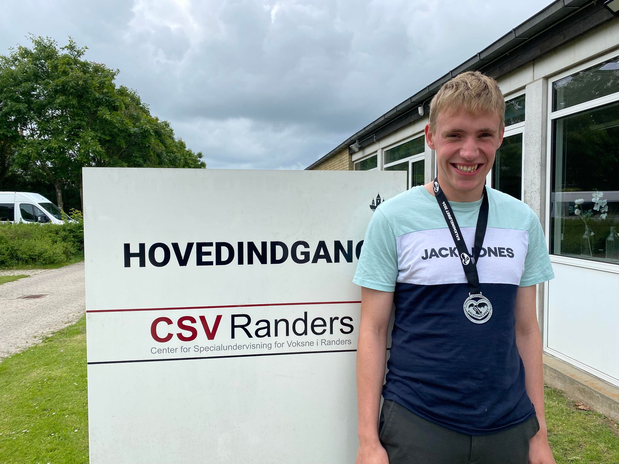 Simon Jørgensen krydsede målstregen som nummer et i Kalkmineløbet 2024. Til dagligt er han elev på den særligt tilrettelagte ungdomsuddannelse ved CSV Randers.