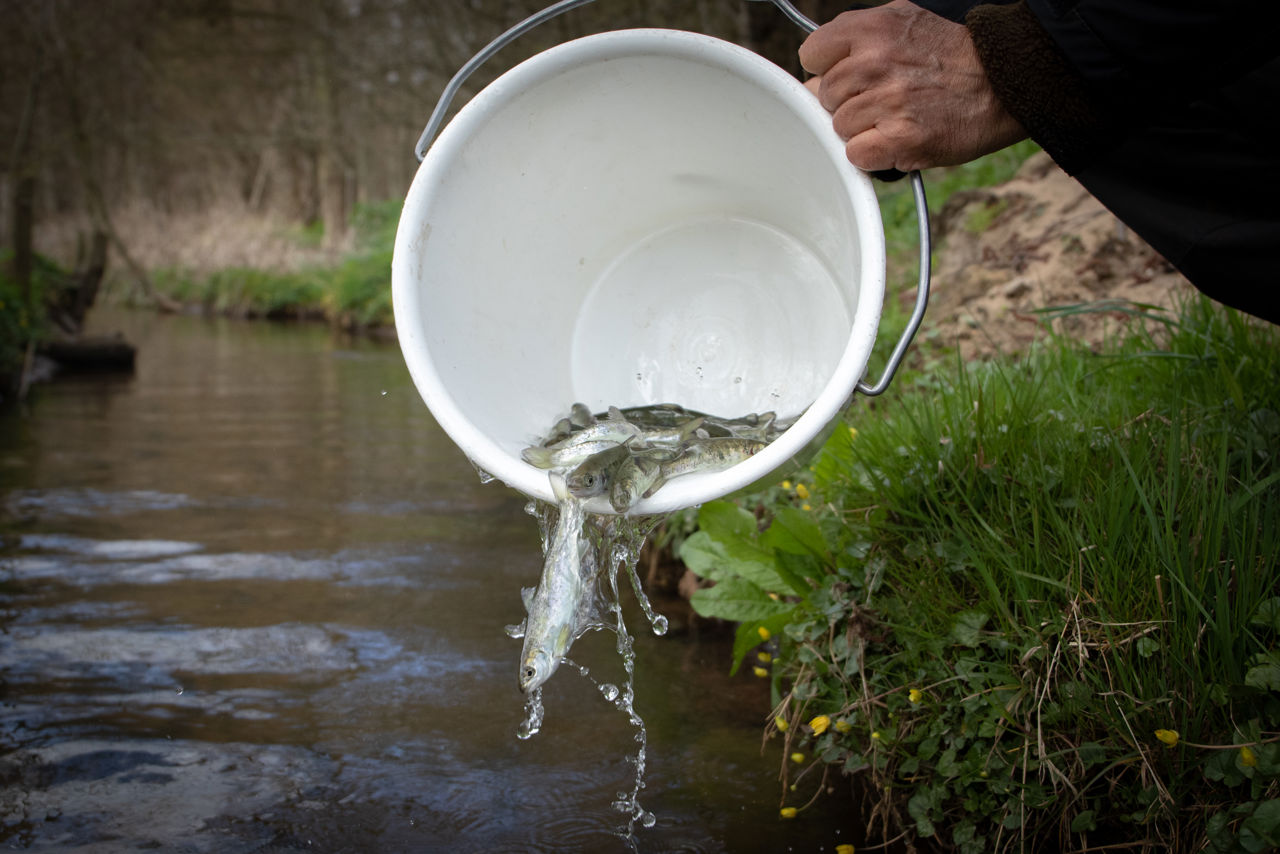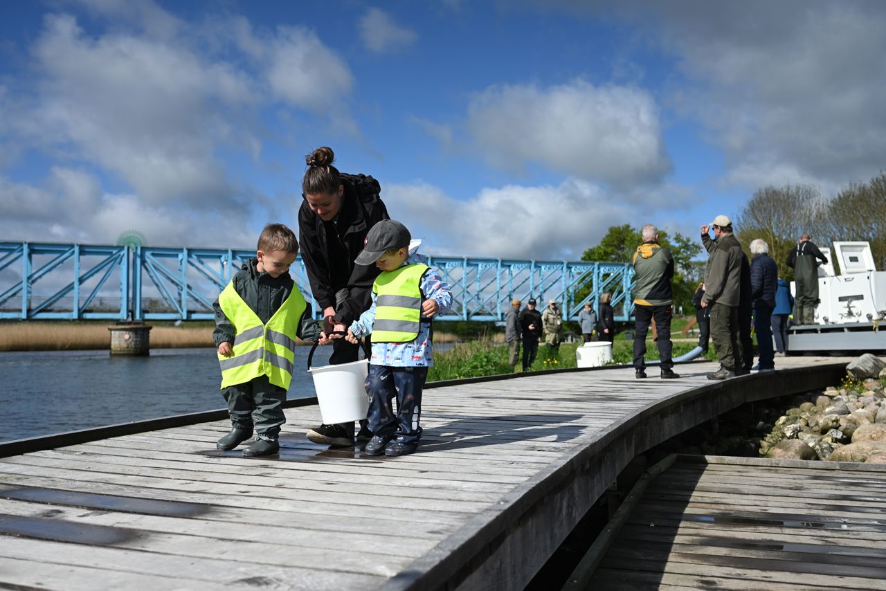Børnehavebørn slipper 10.000 fisk fri i Gudenåen