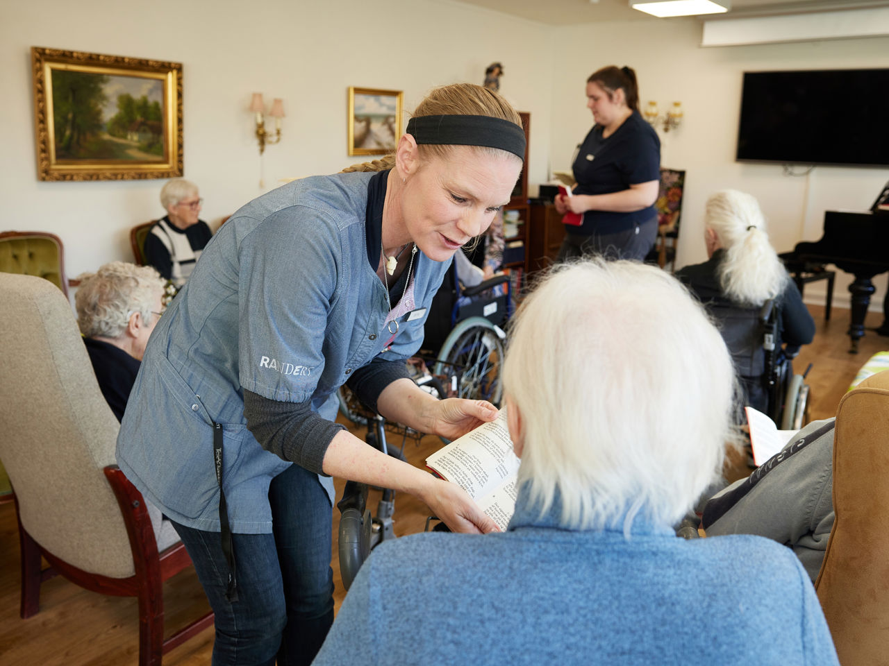 Rundt om på ældrecentrene i Randers Kommune er der mange frivillige tilknyttet. De laver forskellige aktiviteter for beboerne.