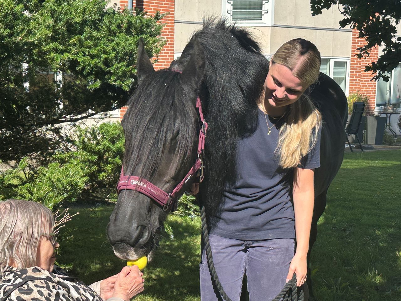 Tidligere på ugen fik beboerne på Vorup Plejehjem en lidt anderledes oplevelse. Her fik de nemlig besøg af hesten Nando. Og det vakte stor glæde.
