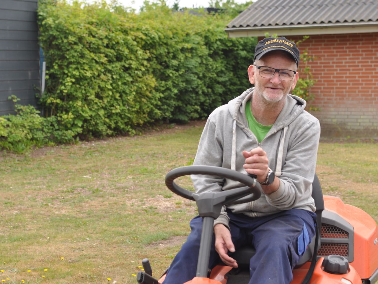 Tirsdag er en ganske særlig dag for 53-årige Peter Chalmer Rasmussen, beboer på Spentrup Ældrecenter. Her hjælper han nemlig ældrecentrets tekniske servicemedarbejder med forskelligt havearbejde - ofte at slå græs.