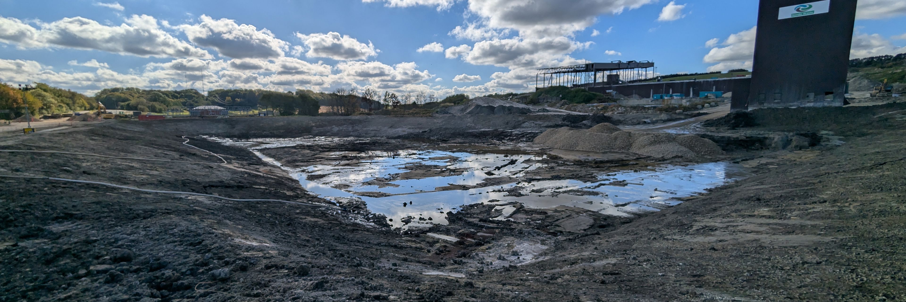 De to bassiner skal bruges til at opfange regnvand inde på skadestedet. Her har der været udfordringer med jordbunden og at sikre, at den kan holde på regnvandet, så det ikke siver ned. Derfor får bassinerne en bentonit-membran.