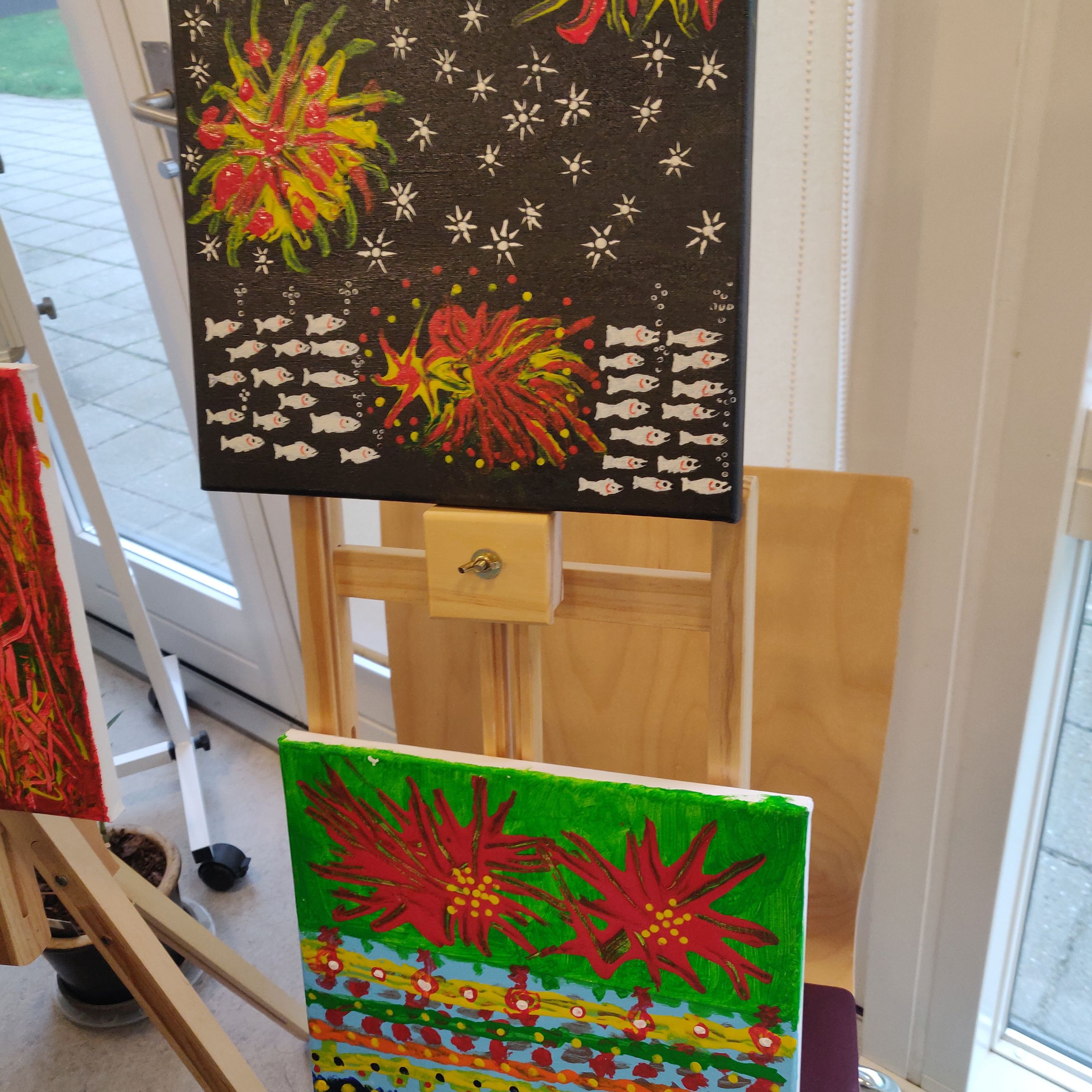 En af deltagerne, som tidligere har arbejdet som kunstner, viste også nye værker frem – skabt efter flere års pause fra maleriet.