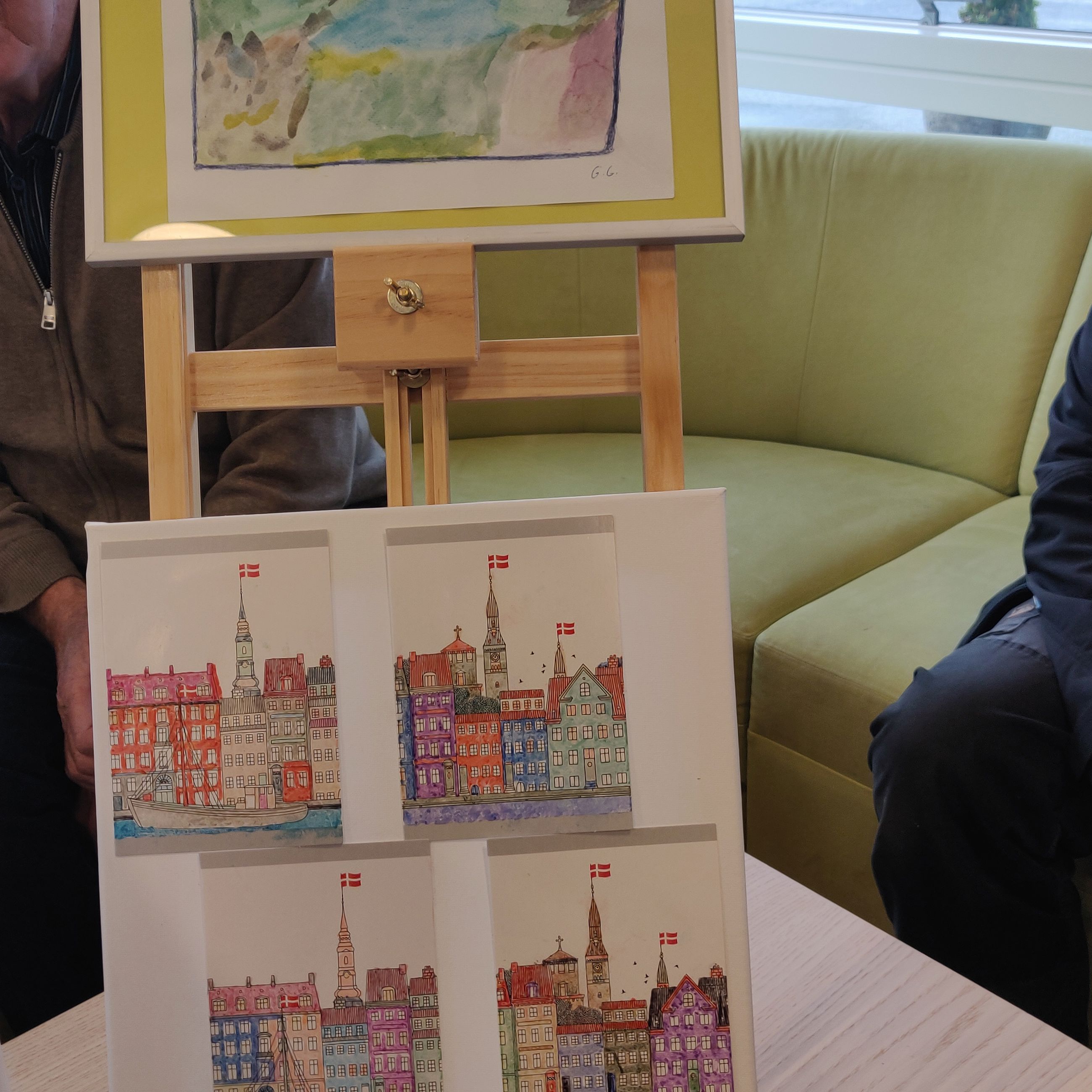 Beboerne på plejehjemmet viste egne værker frem efter et halt års kunstnerisk arbejde