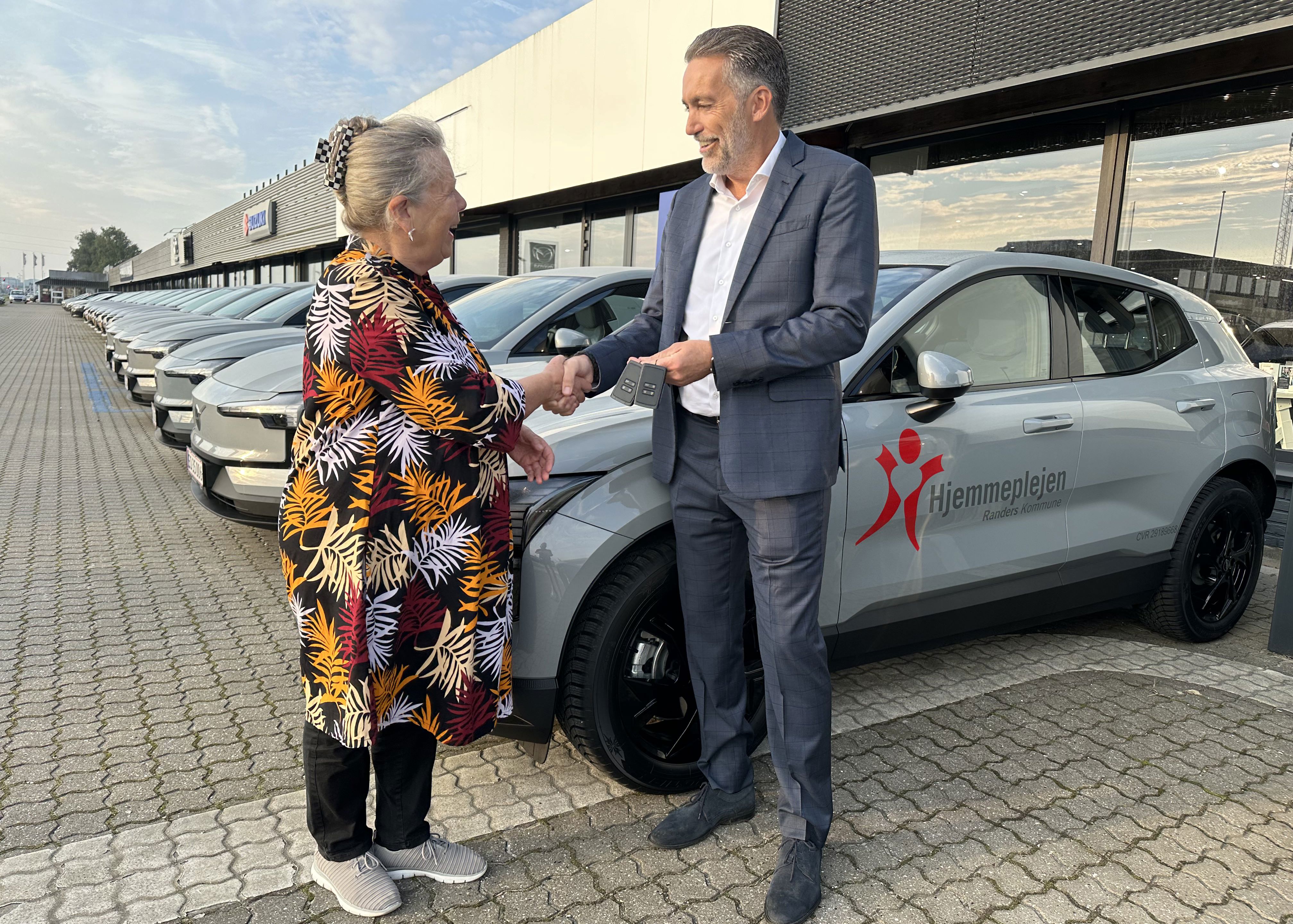 Hun fik torsdag morgen overrakt nøglerne til den nye flåde af biler hos Pedersen & Nielsen A/S, som vandt udbuddet. Bilerne bliver i løbet af torsdag og fredag løbende afhentet af plejepersonalet, der samtidig afleverer de nuværende biler, der har seks år på bagen.