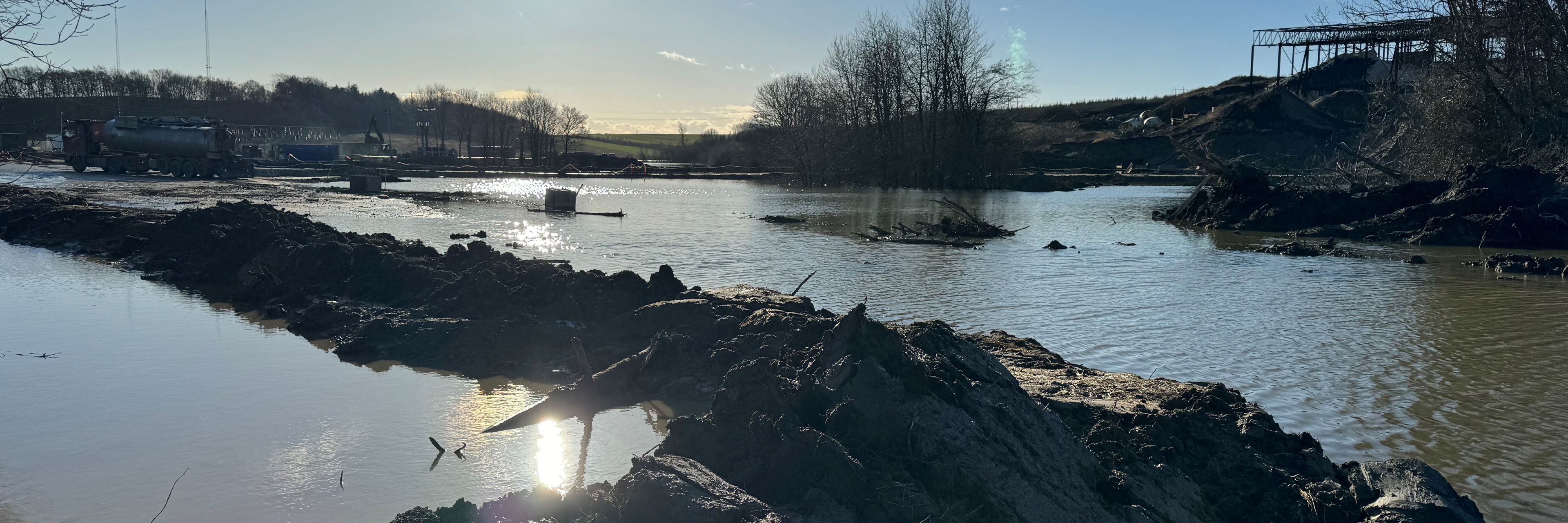 Mandag den 6. februar startede et forsøg med et lokalt renseanlæg, og det bassin, som det behandlede vand skal løbe i efter at have været gennem renseanlægget, er ved at blive tømt. På grund af regnen er der sat en pumpe ind for at bidrage til hurtigere at få tømt bassinet og gøre klar til det behandlede vand.