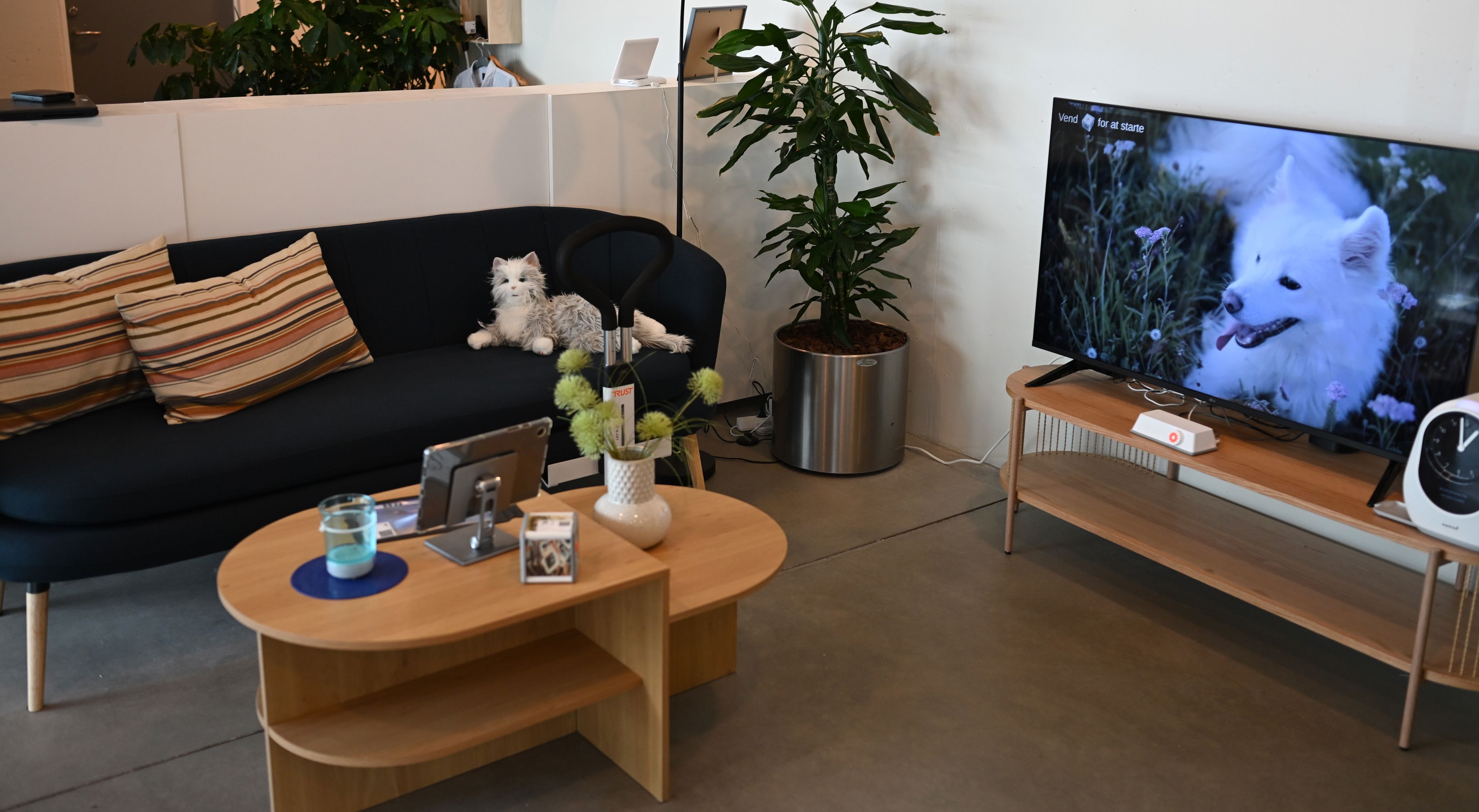 Messestanden er lavet som et spiseområde og et hvileområde, hvor besøgende kan slå sig ned, og mens de tager et hvil blive klogere på en række teknologier og hjælpemidler. Du kan blandet andet komme og prøve VR-briller, der skal øge motivationen for at motionere, opleve skærmbesøg, smarte spiseredskaber samt en memory cube, der kan sætte gang i samtaler om det levede liv.