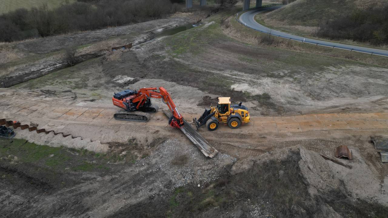 Arbejdet går ud på at grave det spunsbyggeri (en beskyttende væg) fri, der er placeret i det sidste beskyttelsesbassin ved E45. Spunsbyggeriet har ikke længere nogen funktion, da åen er sluppet helt fri.