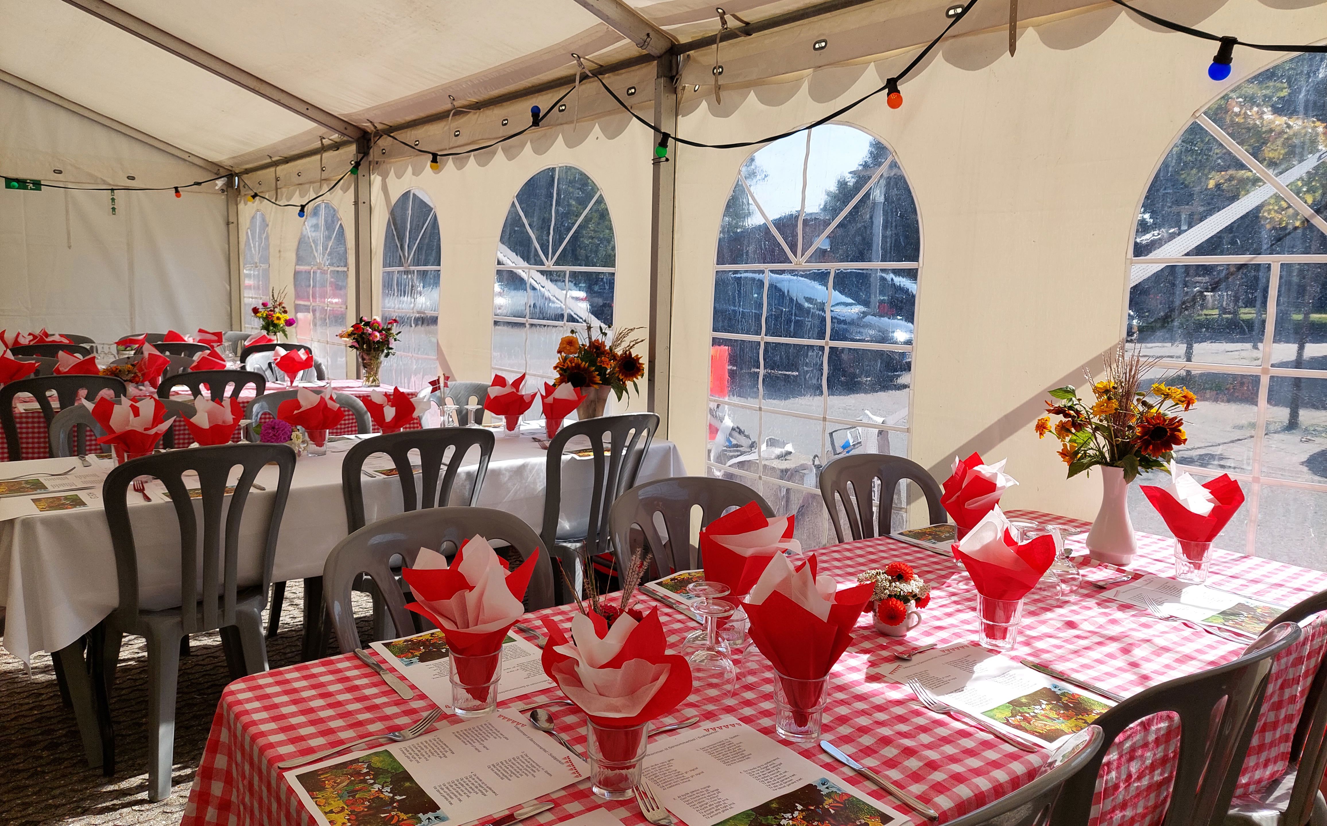 "Vi sørger altid for at motivere beboerne til vores arrangementer, hvilket betyder, at festen bliver en del af hverdagen længe før, den afvikles. Derudover er de også involverede i forberedelserne. Frivillige dækkede for eksempel borde og pyntede teltet med blomster fra deres haver, mens beboere foldede servietter," siger Louise Højgaard Schubert, centerterapeut på Svaleparken.