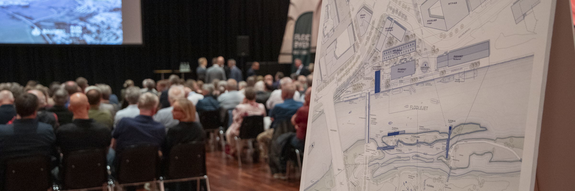 Ridehuset lagde tirsdag d. 3. juni 2025 rammer om arrangementet ”Hvad gør vi, når vi vandet kommer?”. 250 interesserede og spørgelystne gæster var mødt op til aftenens indlæg fra eksperter fra både kommunens lokale myndigheder og aktører, og også DMI og Finans Danmark lagde vejen forbi for at give de større perspektiver på fremtidens klima og boligøkonomien i en tid, hvor mere vand og ekstremt vejr forventes at blive normalen.