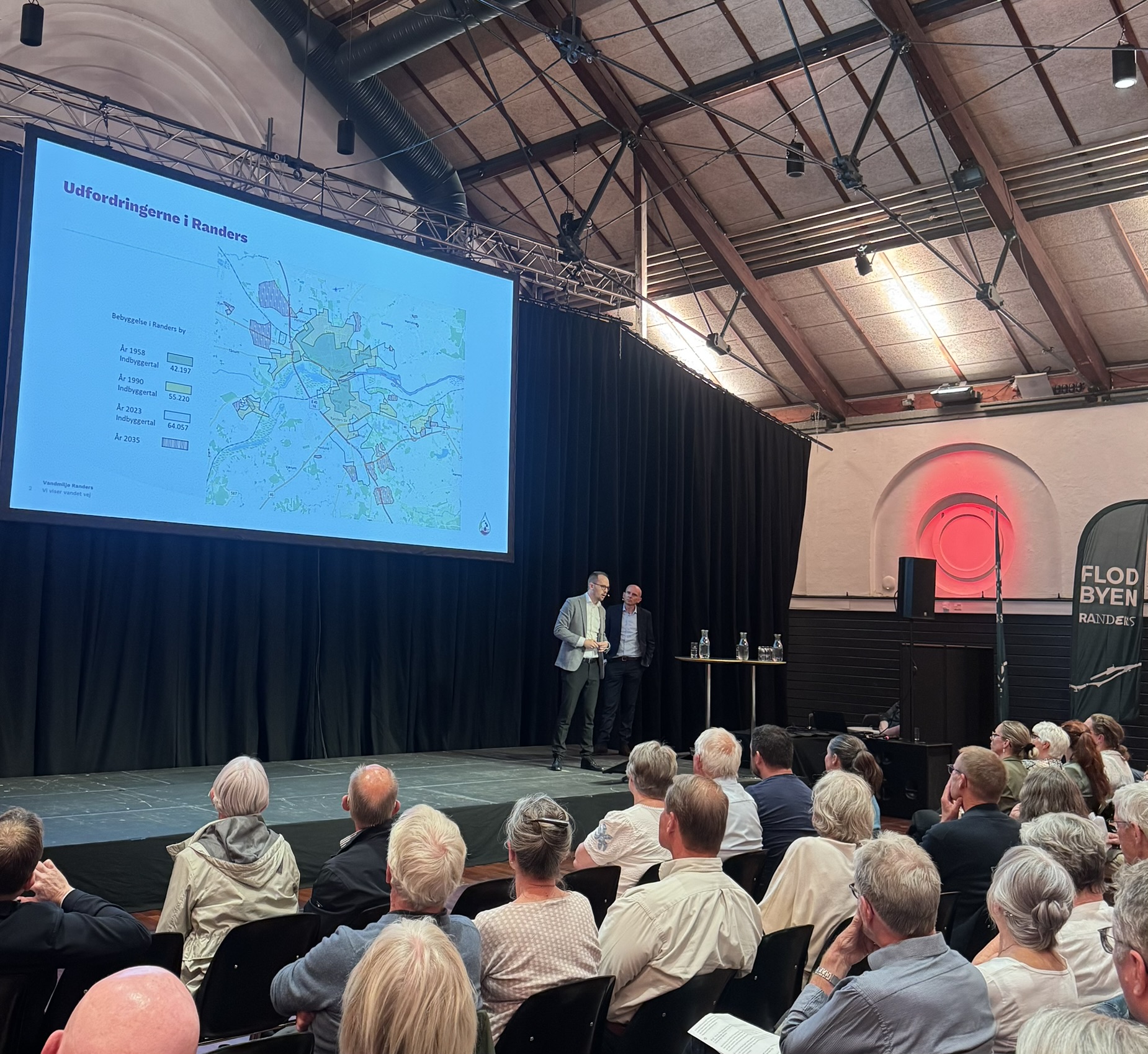 Svarene på, hvad der skal gøres i Randers, blev givet af Vandmiljø Randers, Randers Kommune og Flodbyen Randers, der sammen præsenterede forskellige perspektiver og løsninger på den klimatilpasning, der over de næste mange år hænger sammen med udviklingen af en ny, klimatilpasset bydel. Der er nemlig ingen tvivl om, at vandet kommer, og i Randers bliver det mødt af Klimabåndet, som sammen med den ny bydel i Flodbyen og Klimabroen skaber en klimatilpasset by med adgang til vand og natur for alle.