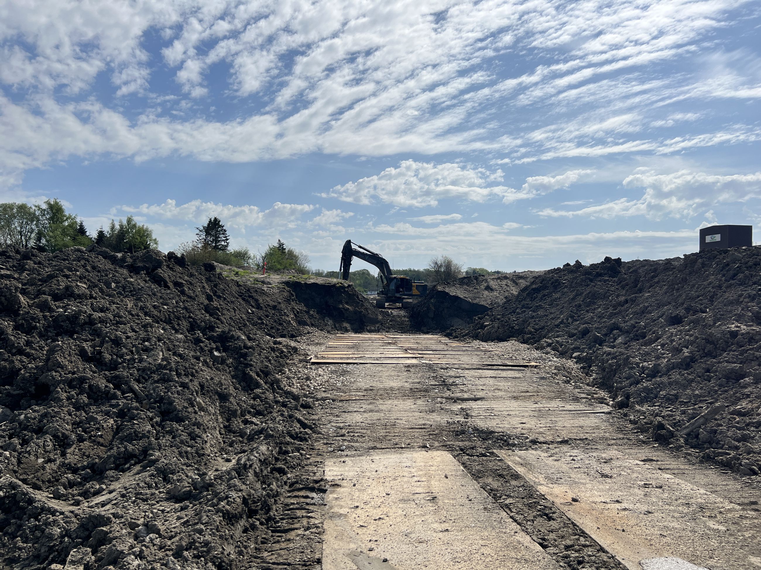 Fredag den 3. maj 2024 gennemførte Randers Kommune prøvegravning på forsøgsstrækningen langs Gl. Århusvej i en bane fra syd til nord på 150 meter og ca. 8 meter i bredden, og der er løbende monitorering af skredet ved hjælp af bøjer og droneopmålinger.