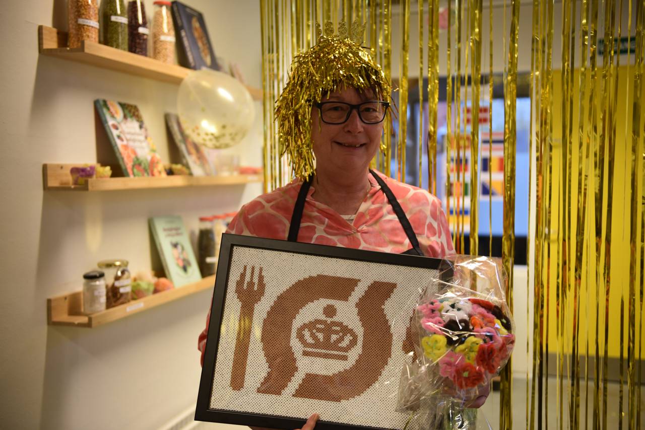 Som en ekstra anerkendelse havde børnehavens ældste børn også lavet en helt særlig buket til Tina Andersen, som hun fik sammen med guldmærket.