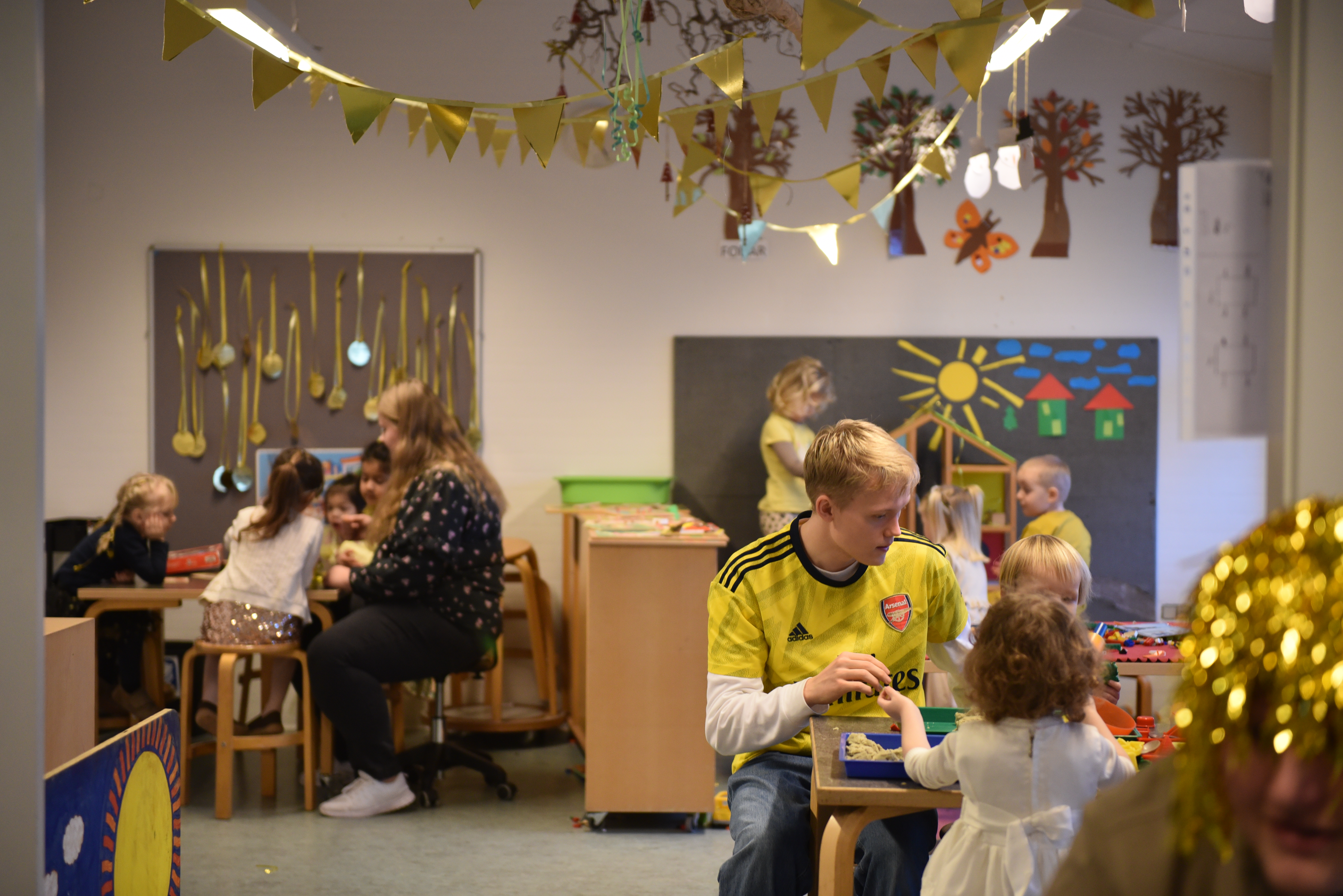 ”Tina er den bedste til at lave mad, og derfor skal hun have en guldmedalje,” siger et af børnene i Vorup Børnehus.