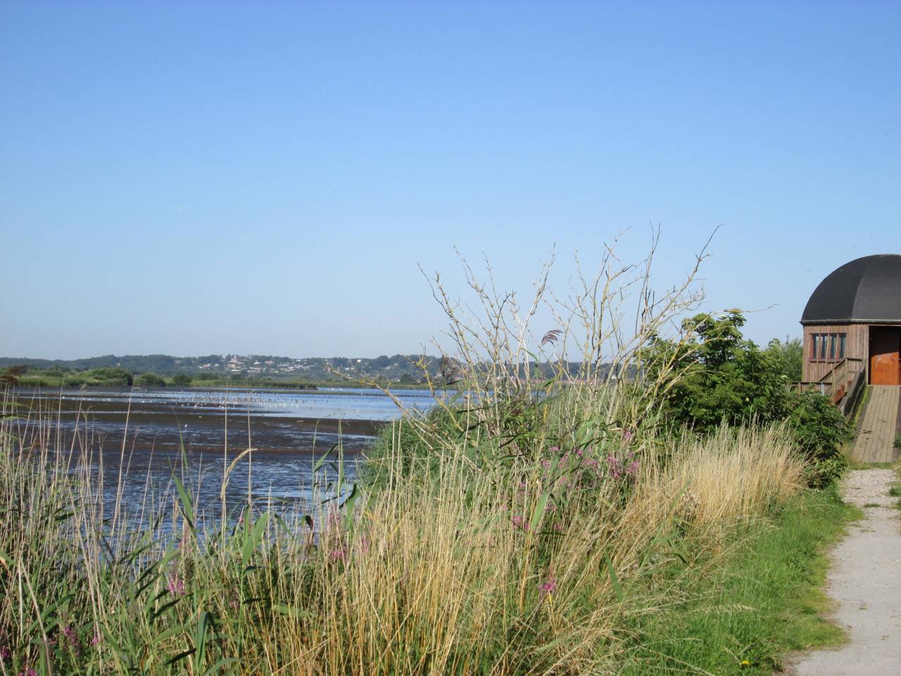 Fra gangbroen ved Randers Regnskov til rastepladsen ved motorvej E45 kan du opleve Vorup Enge på tæt hold på naturstien.