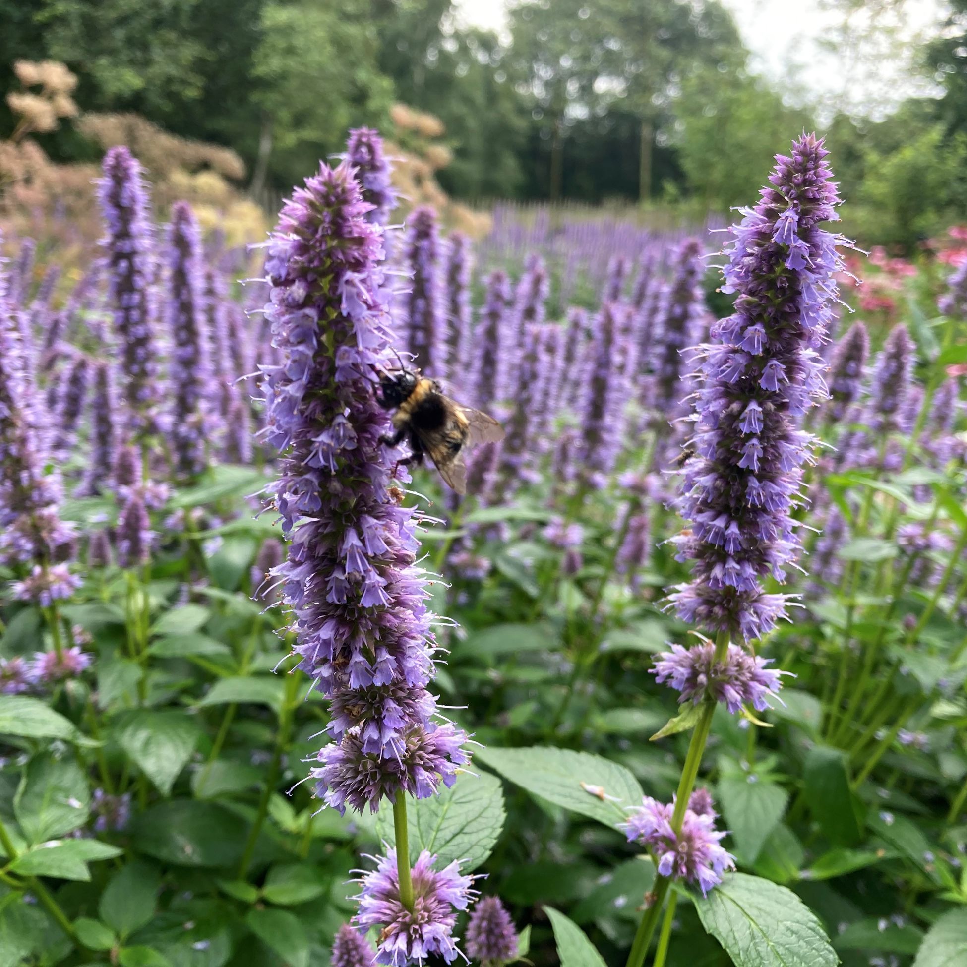 Skovhusets have er renoveret med stauder, græs, træer og en flot snoet sti.