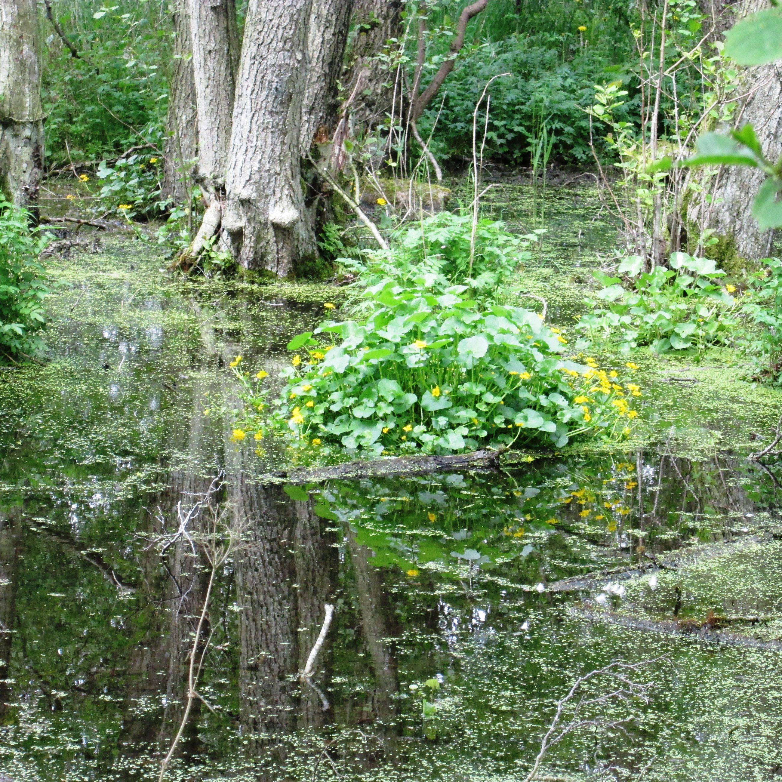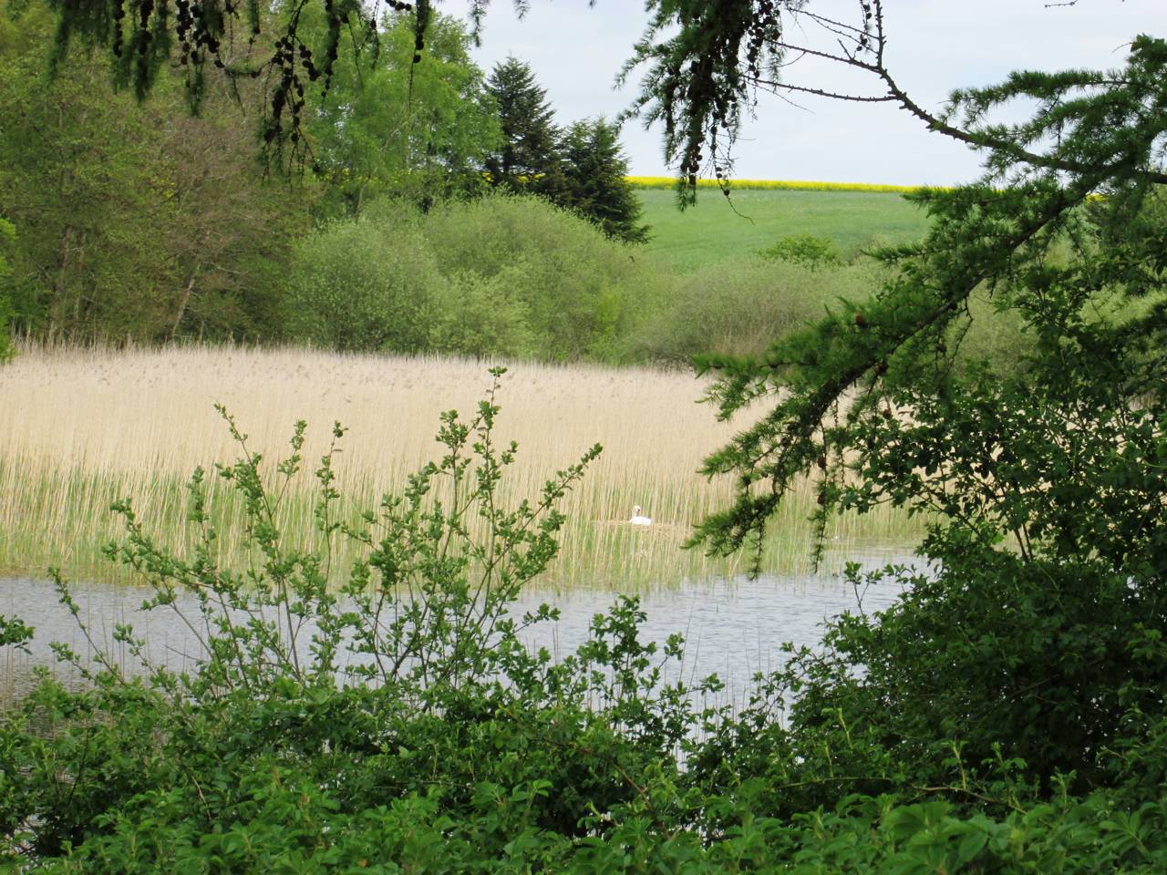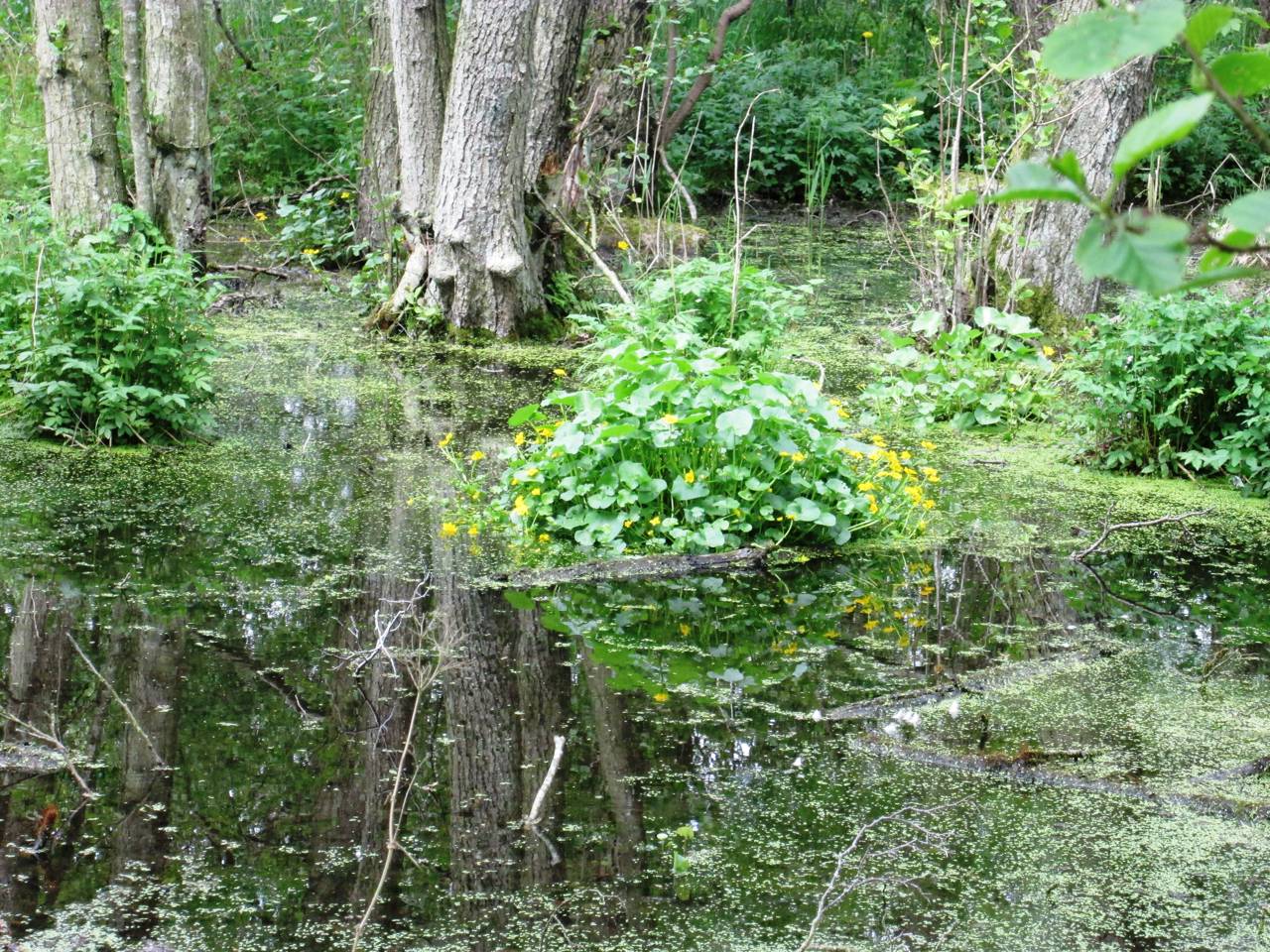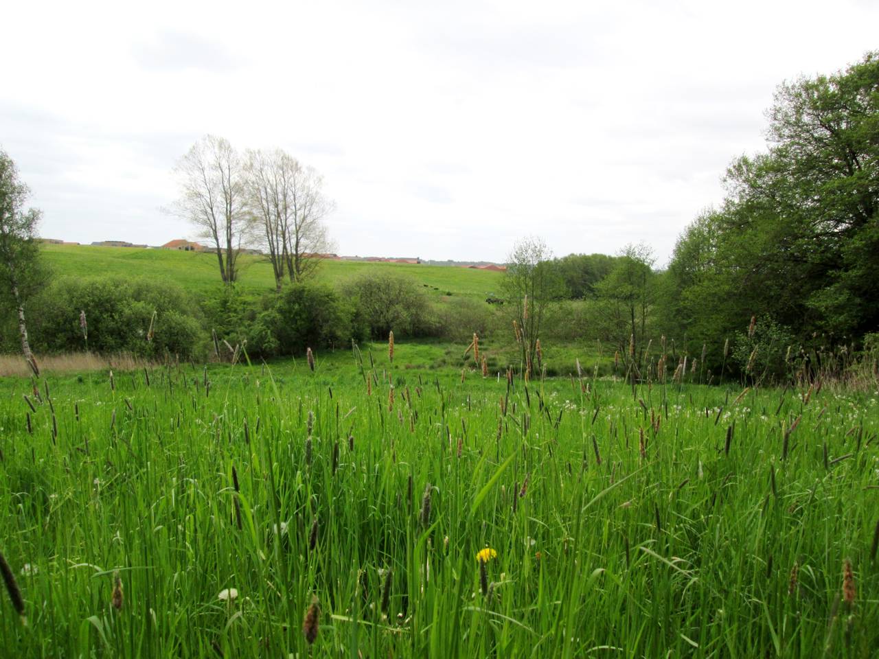 Engområderne afgræsses af kvier om sommeren. Der er flere små søer i området.
