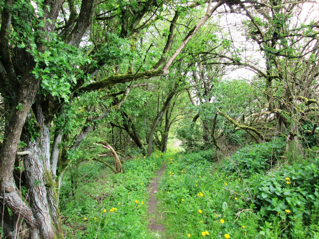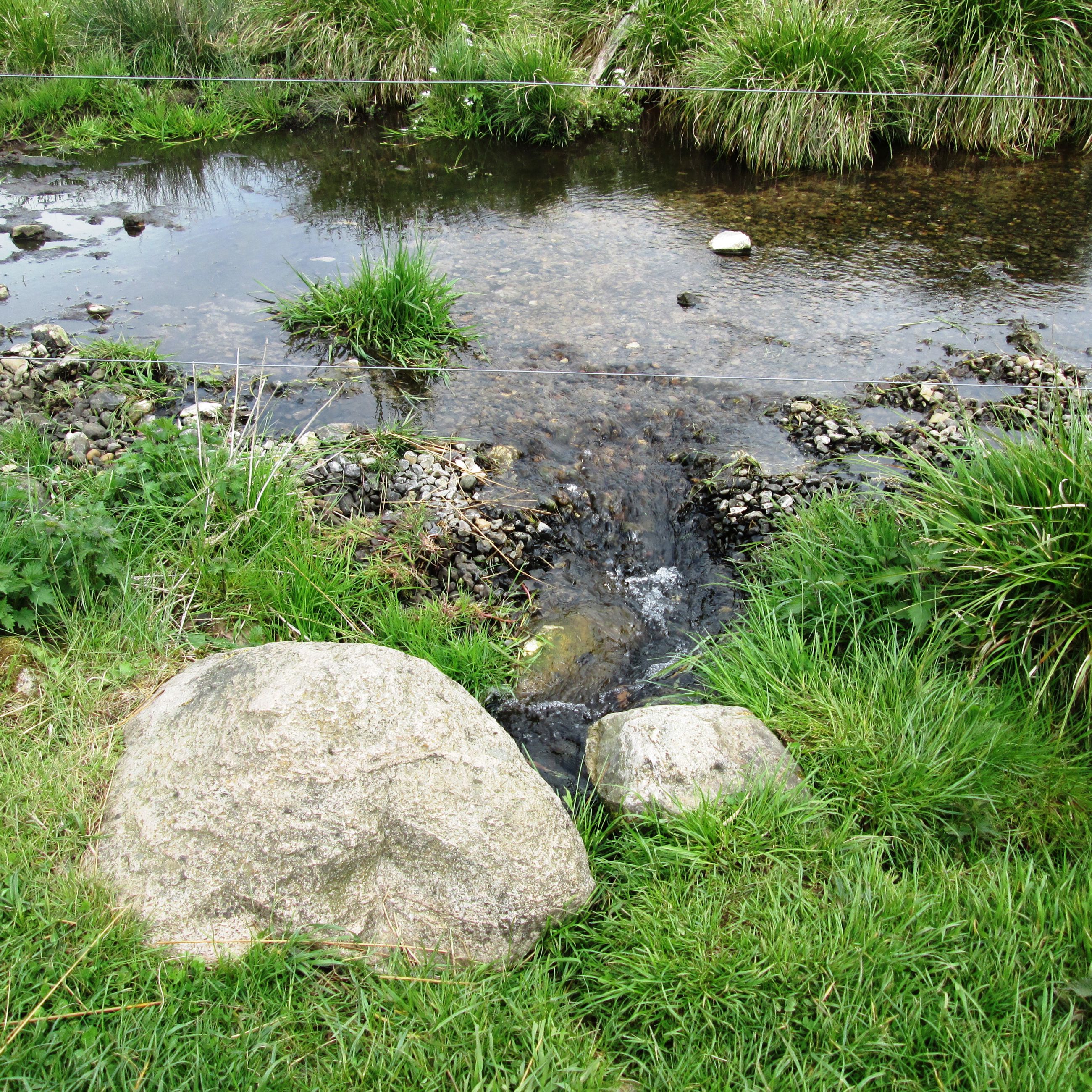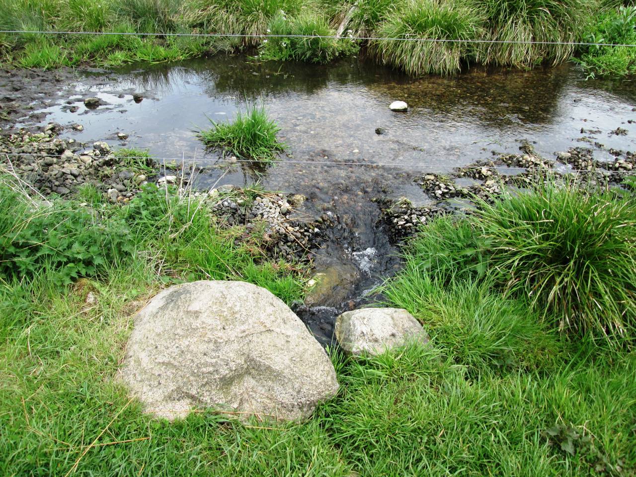 Endvidere går der en sti tværs over dalen og bækken over den eksisterende stenkiste.