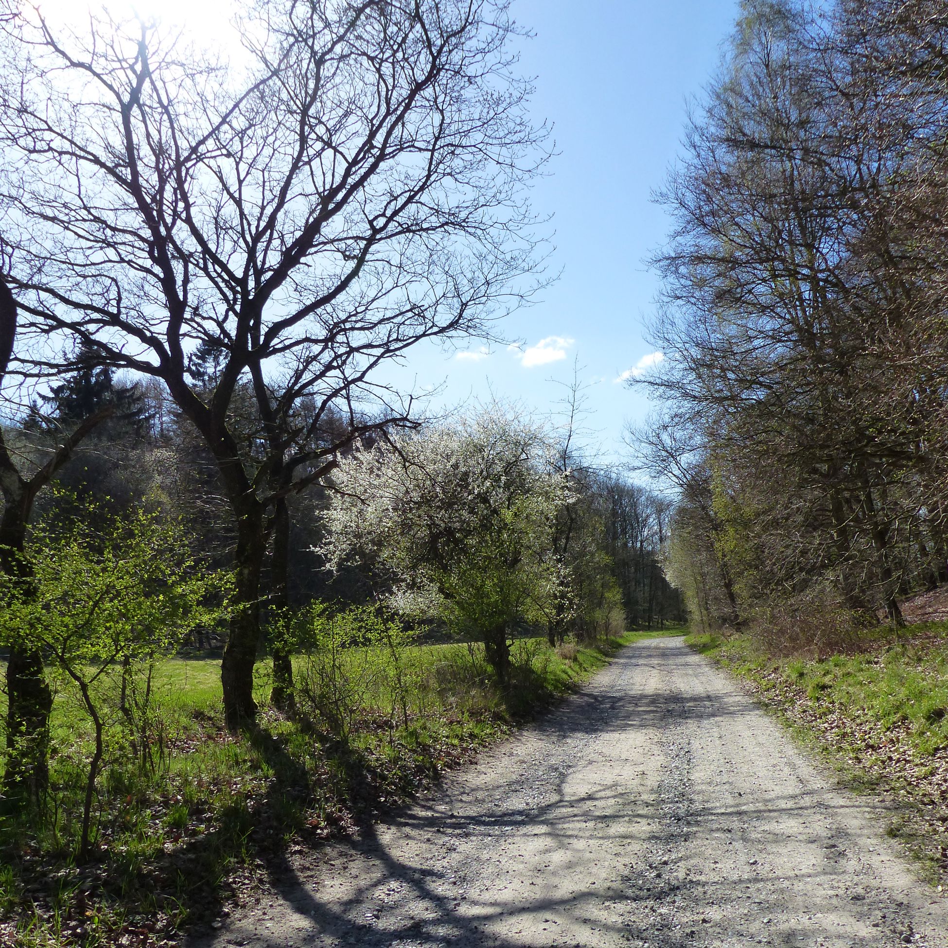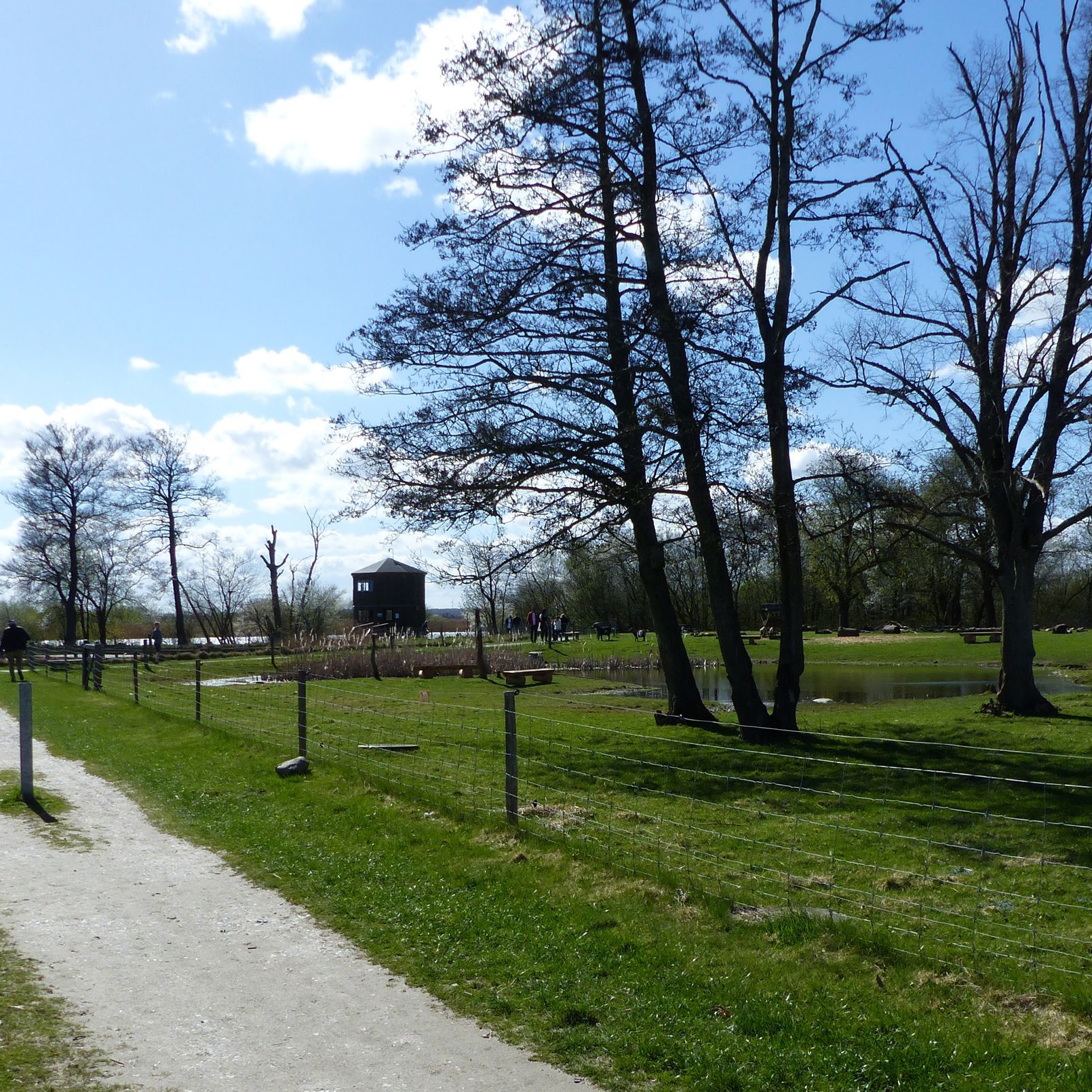 Cykelstien, der starter ved Randers Regnskov, slår følge med pramdragerne på en del af strækningen fra Randers til Langå.