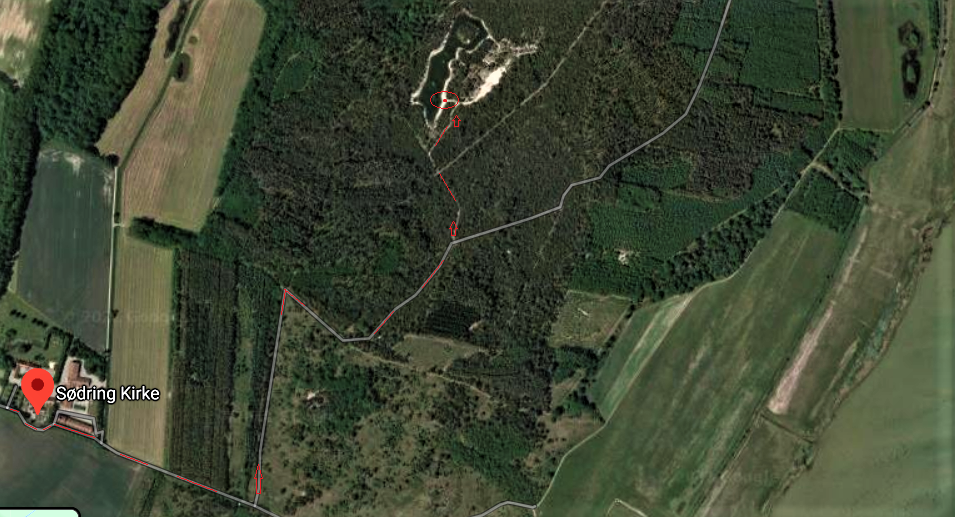 Vi parkerer bilen ved Sødring Kirke lidt uden for skoven. Herfra går turen et par kilometer ind til den kunstige skovsø, der i sin tid blev anlagt for at råvildtet og skovens øvrige dyr fik nemmere adgang til drikkevand. I dag er skovsøen også en smuk oase for os mennesker, når vi besøger skoven. Der er gode stier at gå på, og undervejs kigger vi efter spor fra rådyrene, som man også kan være heldige at se. Turen fra kirken til søen og tilbage igen til kirken er på lige omkring fire kilometer.