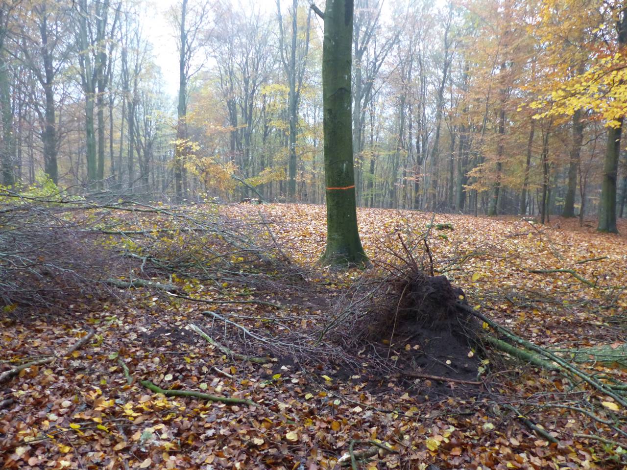 "I Dyrehaven har vi efterladt mere dødt ved, end vi normalt gør ved ud tyndinger. Dyrene har allerede skrællet barken af en del af bøgetræerne. Vi har ladet nogle af de afskrællede træer og døde træer stå tilbage til naturligt henfald, andre har vi fældet og ladet ligge i skovbunden. Og enkelte steder har vi lavet stakke af træ, som får lov til at ligge og rådne op. Alt sammen for at forøge biodiversiteten i skoven. At efterlade de store døde træer stående i skoven er et kompromis, og vi skal hele tiden have skovgæsternes sikkerhed i tankerne. Derfor efterlader vi kun døde træer i behørig afstand fra de befærdede stier og veje. Også i kommunens øvrige skove efterlader vi dødt ved, når vi skover, og fremadrettet vil vi fokusere på at efterlade endnu mere til gavn for biodiversiteten," siger Ivan Guldager.