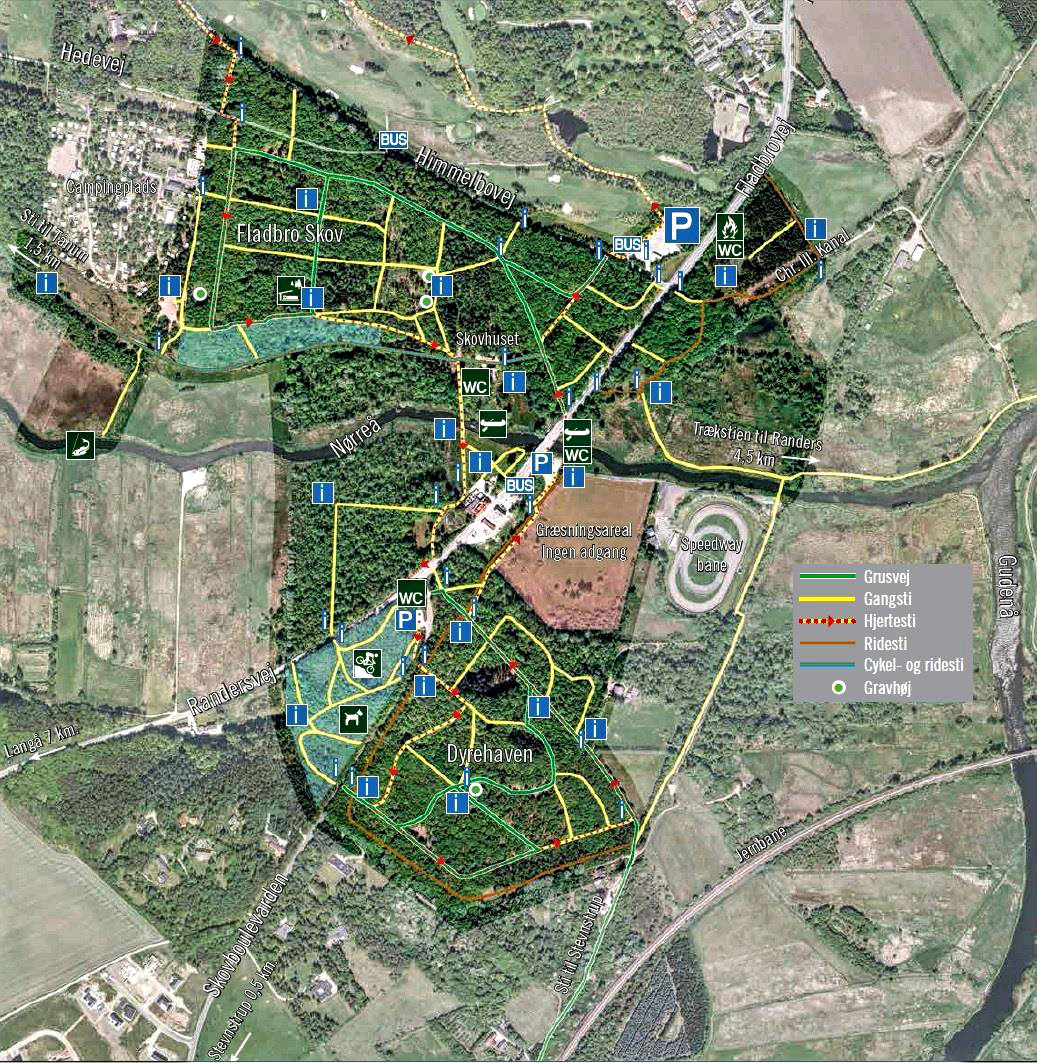 Ved Randers er der flere grønne områder, som giver borgerne mulighed for nem adgang til oplevelser i naturen. Heriblandt er Dyrehaven ved Fladbro, som netop nu gennemgår en forvandling fra tæt, højstammet bøgeskov mod en mere åben egeblandingsskov, hvor biodiversiteten er sat i højsædet. En skov hvor lyset bedre kan trænge ned til skovbunden og give grobund for en selvforyngende underskov, urter, græsser og svampe.