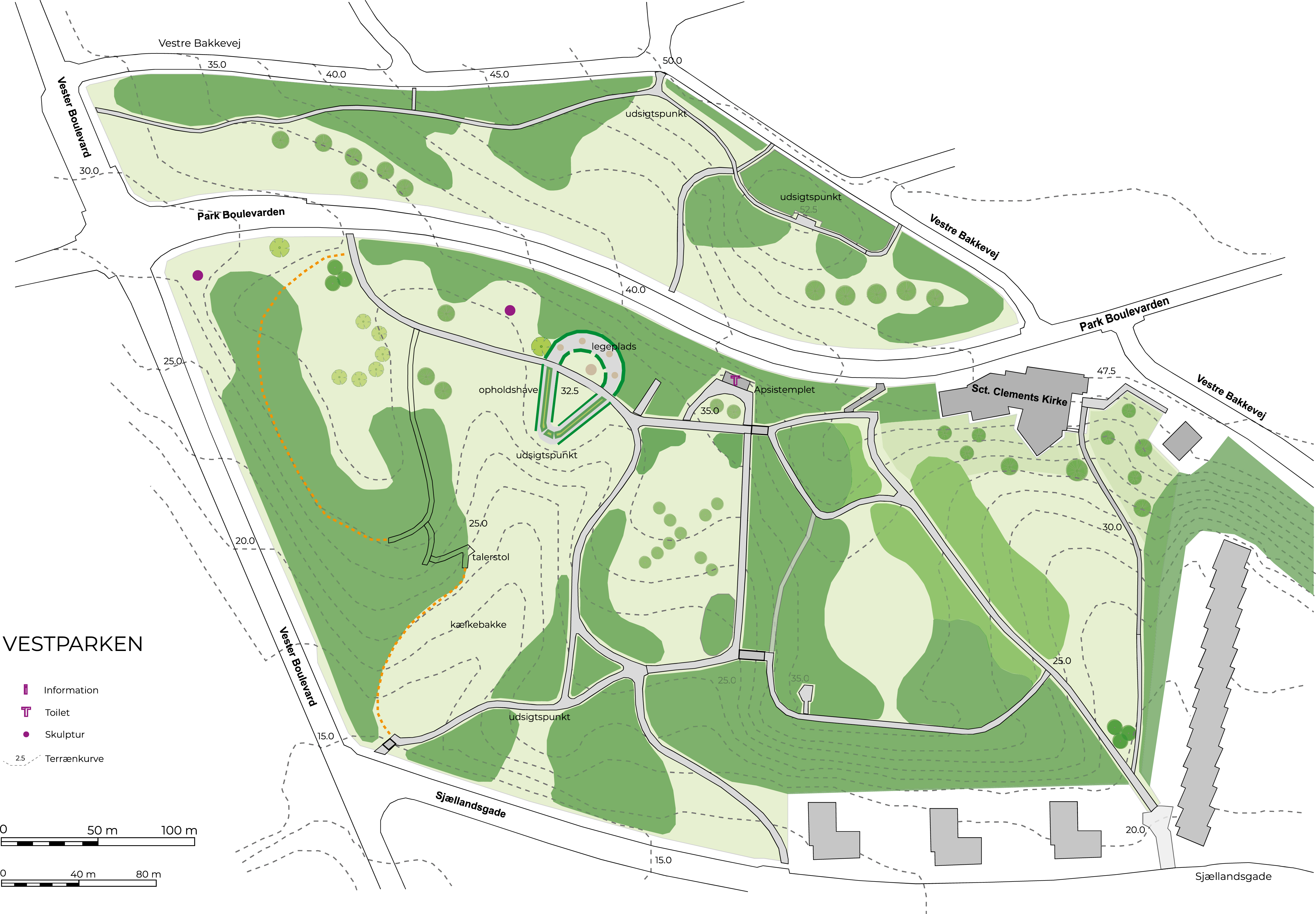- Vestparken har en størrelse på 80.000 m2, som svarer til 8 hektar.