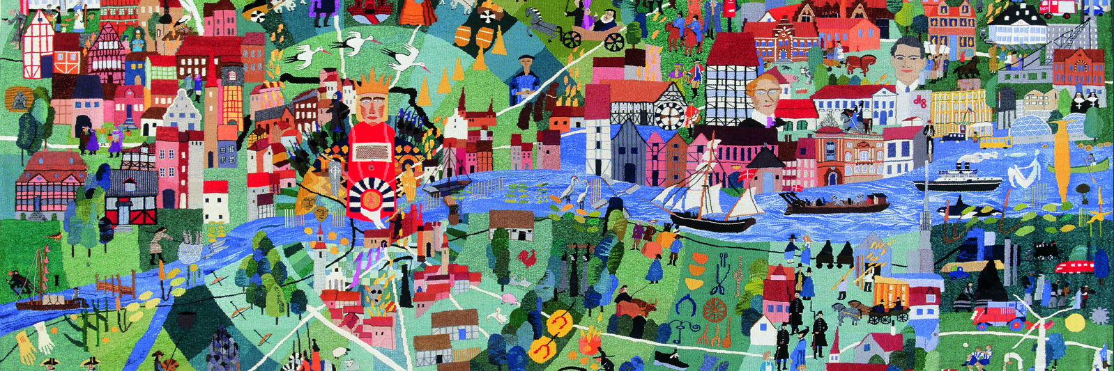 Randerstæppet er et billedleksikon over Randers og består af mange fortællinger og historiske nedslag, der har bidraget til at forme Randers.