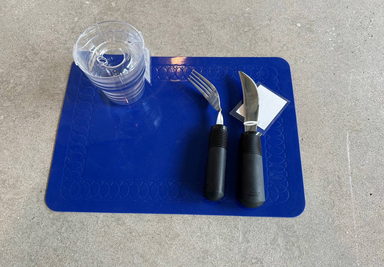 Bestik med ergonomiske greb, tallerkener med høj kant og spildfri glas gør det nemmere at klare måltidet selv. Læs om hjælpemidlerne til at spise og drikke her.