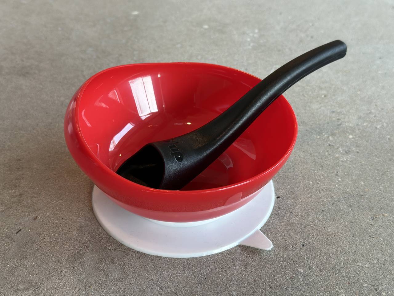 Tallerkner med sugekopper eller skridsikre dækkeservietter kan være en praktisk løsning, hvis det er svært at få tallerkenen til at blive stående på bordet, eller hvis du kun har én hånd fri.