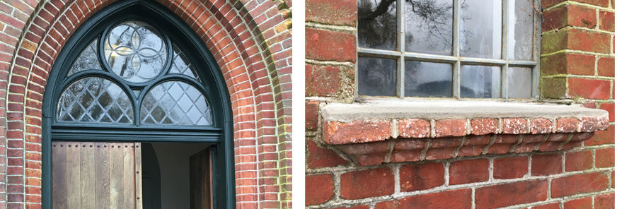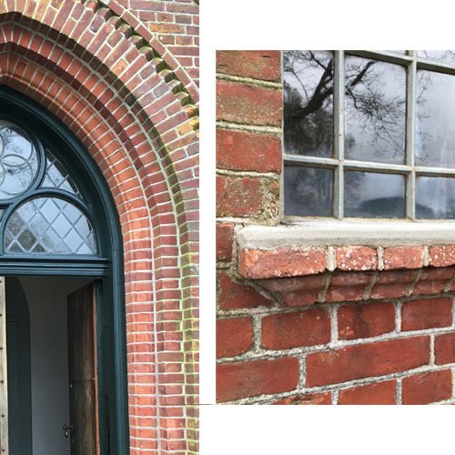 Dørpartiet har gennemgået en nænsom restaurering hvor dørpartiet er slebet ned og kun dørpartiets rådne partier er udskiftet. Dørpartiet er derefter malet med en linoliemaling. Sålbænke har også kun fået et beskyttende lag på oversiden.