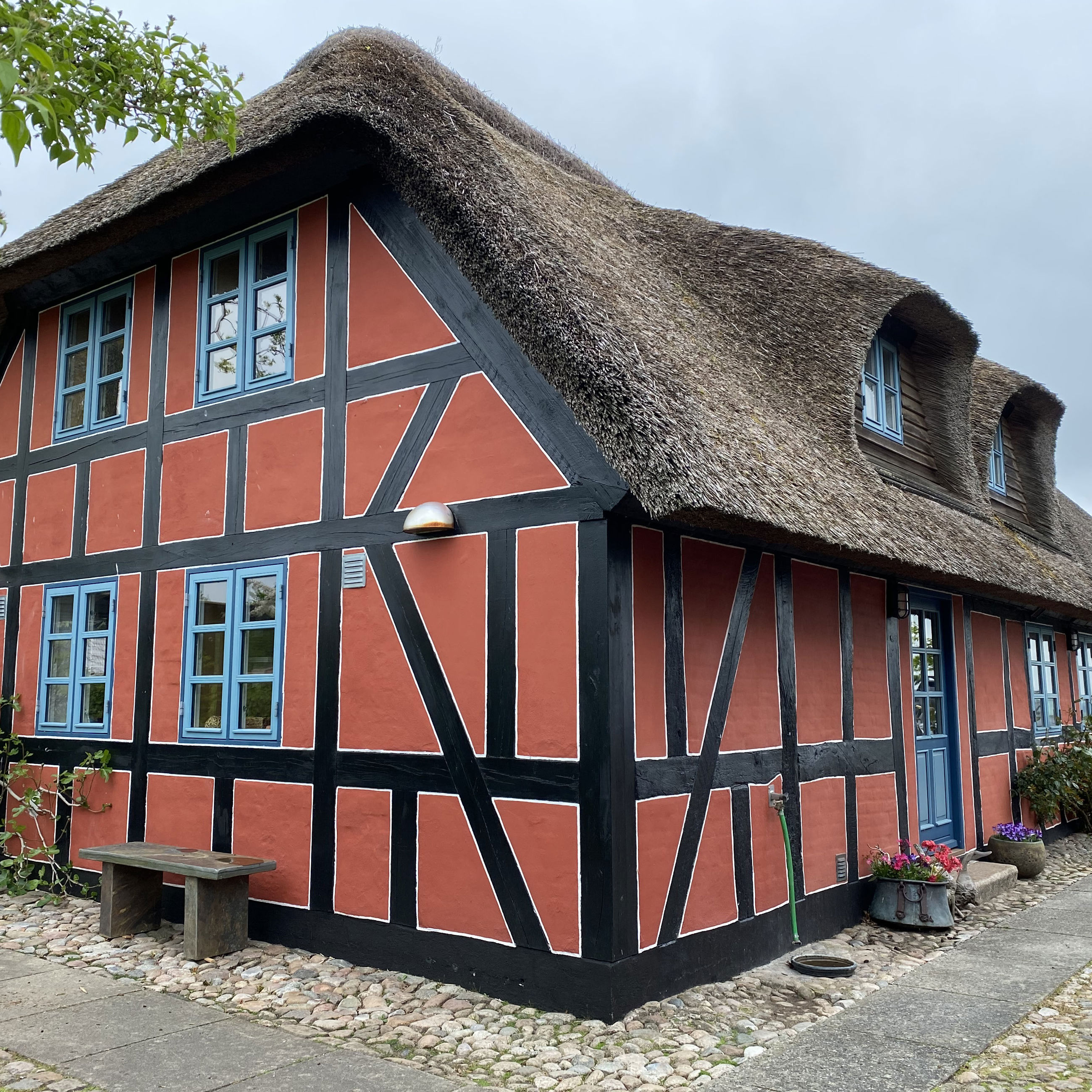 Der blev ansøgt om udskiftning af en del af stråtaget og udskiftning af to større utilpassede kviste, med mere neutrale ovenlysvinduer.