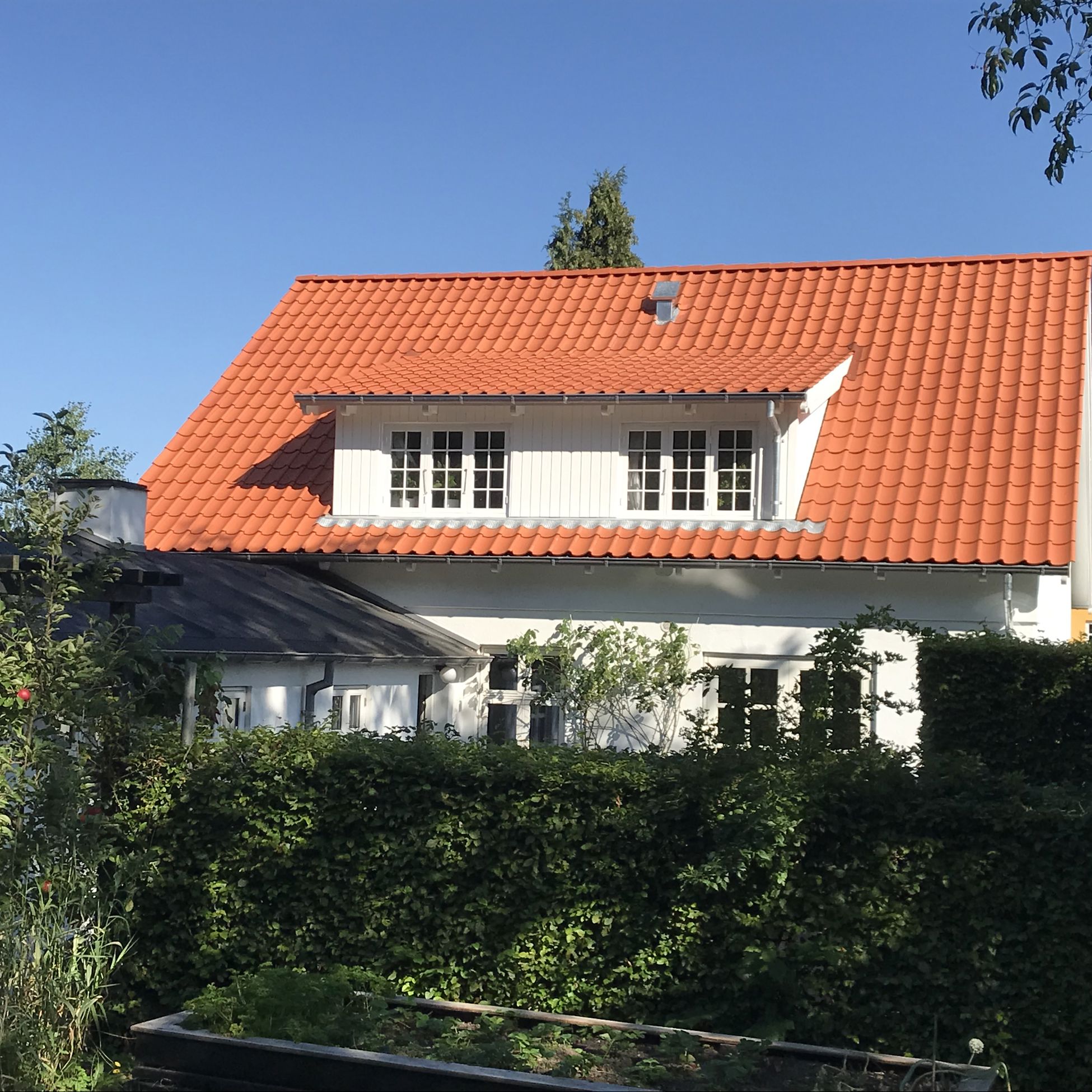 Der er opnået et flot resultat med udskiftningen, hvor der samtidig er tilføjet karakteristiske detaljer og tilpassede tagrender.