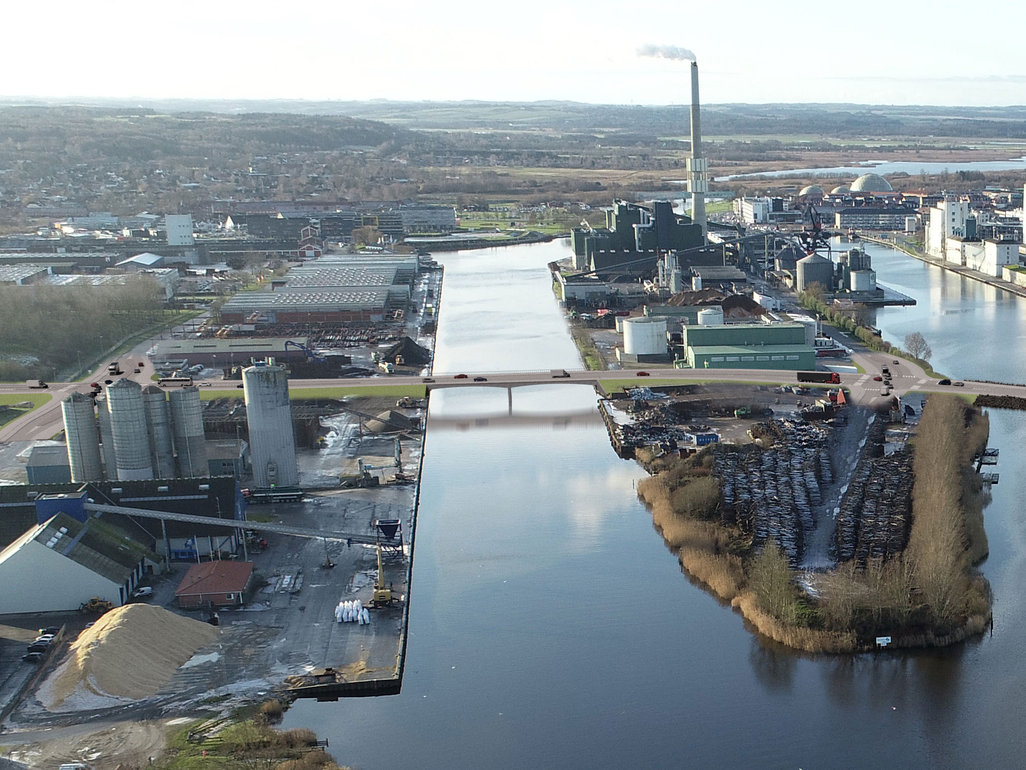 Broen over det sydlige havnebassin vil spænde over 68 meter, men hvordan den skal udformes er endnu ikke fastlagt.