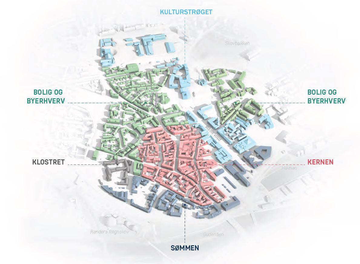 Den strategiske midtbyplan opdeler midtbyen i seks karakteristiske kvarterer med forskellige kvaliteter og potentialer.
